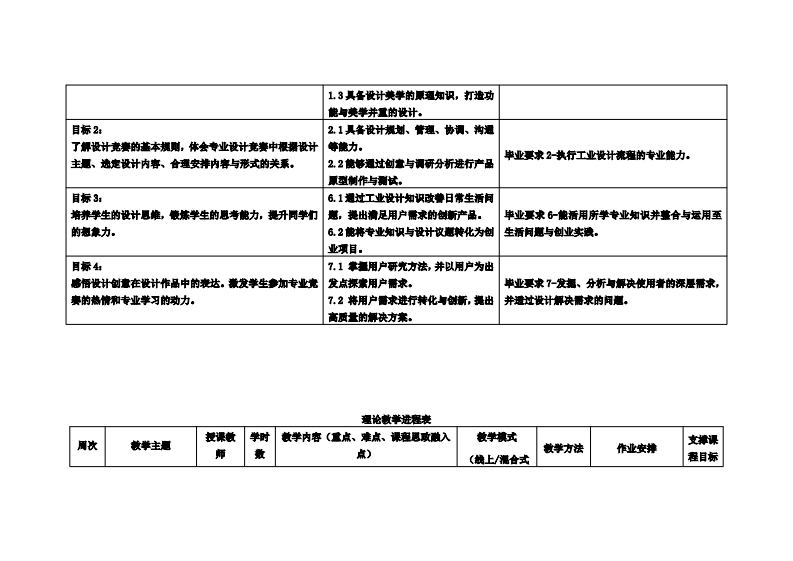 《证照及竞赛指导4》教学大纲课避名称:正服及光责指导4课密类别(必修/选修)选修课程英文名称:License and Competition Guidance4总学时/周学时/学分:16/2/1其中实险/实液学时,10先体课是:正丽及竟赛指导3后续课程支排:正黑及竞责洲导6授课时间:1-8周周三3-4节授课地点:实218提课对律:2022领工业设计班开课学跳:粤合产业科技学陕任课装姓名家称:马居正/件师答鞭时间、地点与方式:1.课堂:每次课前、课间和课后进行客展:2.线上:通过邮件线上答展。课程考核方式:开港()闭卷()课程论文()其它(√)使用微村:《产品开发设计全案解断》肤花,毛侧荣等华中科技大学出版社课座简介:本课程是工业设计专业的基逃造体课程,道过专业设计竟美,目的是使学生通过幸加苹陕粗飘的专业设计党赛,熟运自主设计作品李加专业光赛的过庭。课程数学目标及对毕业要求州标点的支排:课放学目标支撑单业要求指标点单业要求目标1:11掌摄工业设计的著磁知识,能清嘴通过该课程的学习,使学生了钾专业设计竟妻的应用目地将设计想法呈现。单业要求1-施练运用设计盖随知识,智能制造知识的、量要意义,掌做田工具以及材料的使用,使设计作12能培理钾智能制造的基本振老和原与费学知识的能力。品得到完黄的表达,理来实现设计的目标,