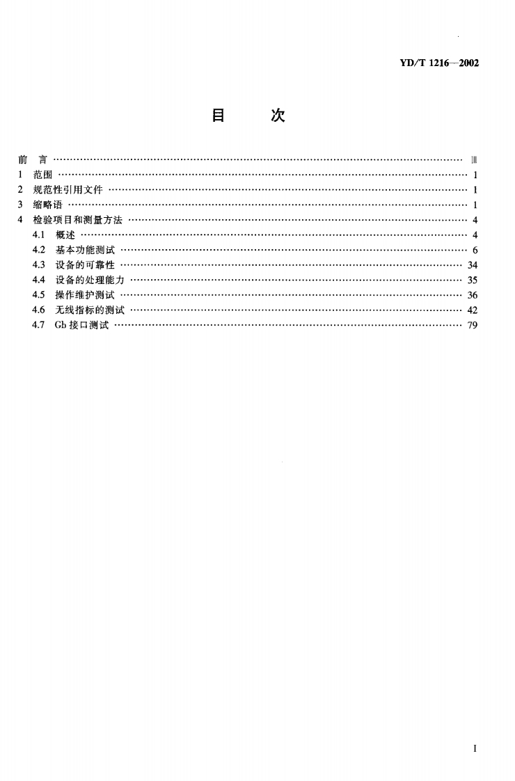YD中华人民共和国通信行业标准YD/T1216-2002900/1800 MHz TDMA数字蜂窝移动通信网通用分组无线业务(GPRS)设备测试方法:基站子系统900/1800MHz TDMA digital cellular mobile telecommunicationnetwork test method for general packet radio service:base station sub-system equipment2002-06-21发布2002-06-21实施中华人民共和国信息产业部发布