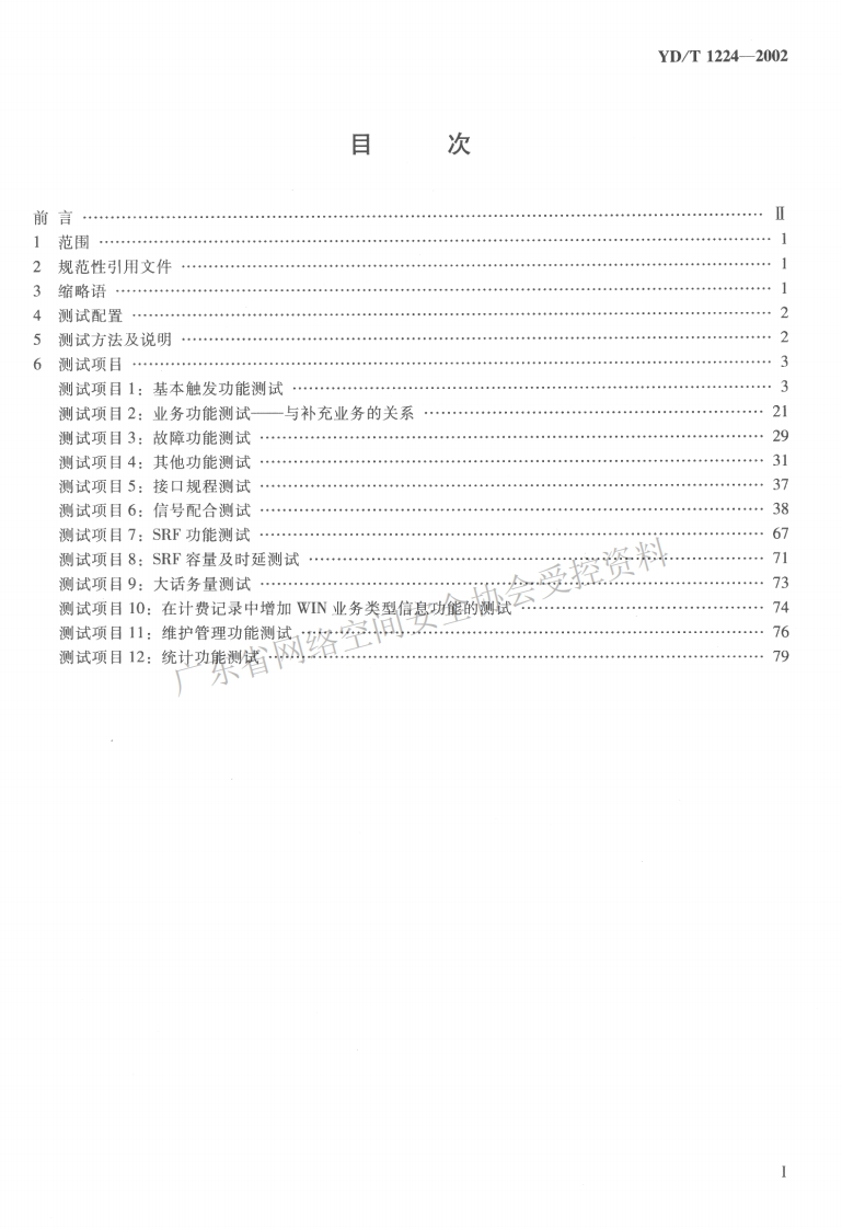 YD中华人民共和国通信行业标准YD/T1224-2002800 MHz CDMA数字蜂窝移动通信网无线智能网(WTN)阶段1:业务交换点(SP设备方法800MHzCDMA digital cellular mobile communication networkWireless Intelligence Network (WIN)Phasel:Equipmenttest methods of Service Switching Point (SSP)2002-07-22发布2002-07-22实施中华人民共和国信息产业部发布