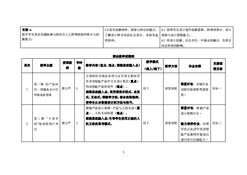 《跨领域设计》教学大纲课容名称:時顺城设计谋容类别(必修选修):专业必修课课是英文名称:Interdisciplinary Design总举时周学时学分:48/3G其中实验实瘦学时:32先修课强设计家推、机就制图与计算机端助工业设计后续课程文排年专测设计、单业设计授课时间:周一57节(1-16周提课地点:实验楼218授课对律:2021极工业设计开课学院:粤台产业科技学佛任课就柳姓名职淋:黄士严就授答凝时间、地点与方式:实202/周二56节课程考核方式:开卷()闭卷()课程论文()其蛇(W)使用数材:《最务设计:用腰致体验事海用户遮随),黄着着,机械工业出服社,2020年11月SBN:9787111667735数学套考责料:《细桃产品设计》,普本出酸有限公司着,电于工业出酸社,2020年8月算2服SBN:9787121321559课没简介:本课程以设计思考、使用清行为分析来分析在市场上的各种清贵清行为,引导学生过实际设计一服务行为,去建构新的商业服务模式,设计不只是设计服务,更是设计与服务相关的整个商业系绕。遗过共情调来客户雷求,打造立体的客户体脸:从中培养学生关于如何分析用户需求与产品开发的限制性,从更高的角度限卫广大的视野来做一项新的全面性聘顺城设计的着础。