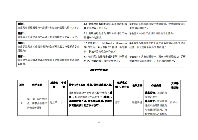 《跨领域设计》教学大纲课容名称:時顺城设计谋容类别(必修迹修):核心谋容必修课瀑程英文名称:Interdisciplinary Design总学时周学时学分:48/30其中实验实陵学时:32先修课程:基本设计,产品设计与模型制作、设计素准、机嫩制图与计算机辅助工业设计后城课程文排年设计实务讲速、专题制作、毕业设计授课时间:周五13节(116周授课地点:实验楼218机电楼310授课对像:2023工业设计开课学洗粤合产业科技学洗任课秋师姓名职称:黄士教授答乘时间、地点与方式:实202周三算1-2节08:30-10:10课避考核方式:开卷()闭卷()课程论文()其它(W)使用数材《康务设计:用腰致体验事得用户遮随),黄膏着,机械工业出服牡,2020年11月SBN:978711166735教学考资料:《智能版应广品设计》,普本出酸有限公司着,电子工业出腋社,2020年8月第2版SB:9787121321559课庭情介:本课容以设计思考、使用者行为分新来分析在市场上的各种消贵者行为,引导学生通过实标设计一项服务行为,去建构渐的高业服身模试设计不只是设计康务,更是设计与康务相关的整个商业系续。漫过训察客户需求,打造立体的客户体验:从中增养苹生关于如何分析用户膏求与产品开发的限制性,从更离的角贵康更广大的视财来做一项新的全面性骑狱设计。课程教学目标及对毕业2要求指标点的文排年课程数学目标文排革业要求指标点单业要求