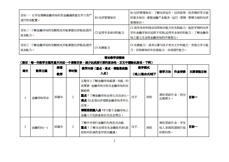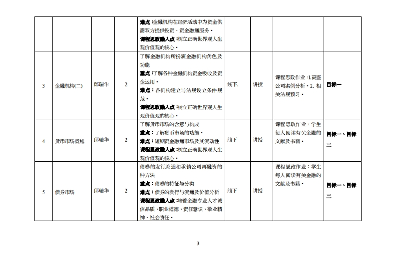 《金融市场》教学大纲课狸名称:金难市场课容类别(必作选修):选修课程英文名称:Financial Markets总学时学时学分:3222其中实验实我学时:16先继课程:后块课粗支撑:授课时间:1-16周三第3节至4节授操地点:实305授课对橡:21级经济与金巡缘2斑开裸学院:粤台产业科技学院任课表姓名职游:串中师客时间、地点与方式:1每次课的课前和课后·采用主题单元教学:请学生事前先预备单元内容相关基本知识点提高学习多元化·2每次上课,采用TBL·PBL二种方式进行案例分析讨论的问答方式进行分析·课程核方试:开卷()闭卷()课程论文()共它()使用数材:《盘微市学》,电子工业出版社,8BN978-7-12140347-7,2021·教学◆责料:1案例分析·2金难相矣法规(公可法·合伙企业法·信托法·合问法·刑法·行法·情券法及证苏法等金雕相关法规·课程简介:(金难市场学)是市场经济重要组成部分:金难场学更是金雕专业的基础课程,课程内容以金难市场为研究对象,主要包括金难市场导论及嫩机构所粉演角色及功能·货币市场·资本市场·外汇市场·金雕衍生市场·金雕市场些管及互联网金雕等内容·通过课程的学习,学生应掌提上遮金难市场学的基本概念·并能够运用所学基础知识·理论和方法分析解夫金市场的相关问题,达到金难学专业培养目标的要求,为今后进一步学习、理论研究和实际工作填定投资分析的基础·课程教学目标及对华业雯求指标点的支撑:藉由本课程教学学生能更从经济内外在环境变化中,看见金难业技术及产品多元化·即时化及客制化:时于日后自我投资或就业能带来充分知识并将自我投资行在生活中·课程数学目标支排毕业要求指标点单业要球