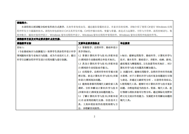 《面向对象程序语言》教学大纲课避名称,面向对象程序语言课忍类别(必修选修)必修课程英文名称:Object--Oriented Programming Language总学时周学时学分,48w3/3其中实险实液学时,8先修课塞:程序设计【、程序设计Ⅱ后续课程支嫌进阶面向对象程驴语言漫课时间:1-16周周四1-3节授课地点:实606课对律:2023级多媒体系1班开裸学粤台产业科技学院多媒体设计系任课花姓名琳:盛介中/刷教报答聚时间、地点与方式:实验楼3071每次课的课前、课间和课后,采用一对一的问答方式:2每次习愿课,采用集中讲解方式课庭考核方式:开卷()闭卷(√)课程论文()其它()使用数村:C#从入门到精通,王小科、吕双,清华大学出版社。妆学事考量据:L.游戏开发实战教程(Uity+C#),王鹏杰等着,机械工业出版社在线:1各精品资源共享课网站2.高校邦-综合能力提升在线学习平台(g3 oxiaobang.com)3.Unity官网文件资源