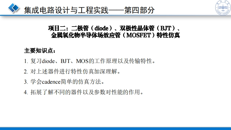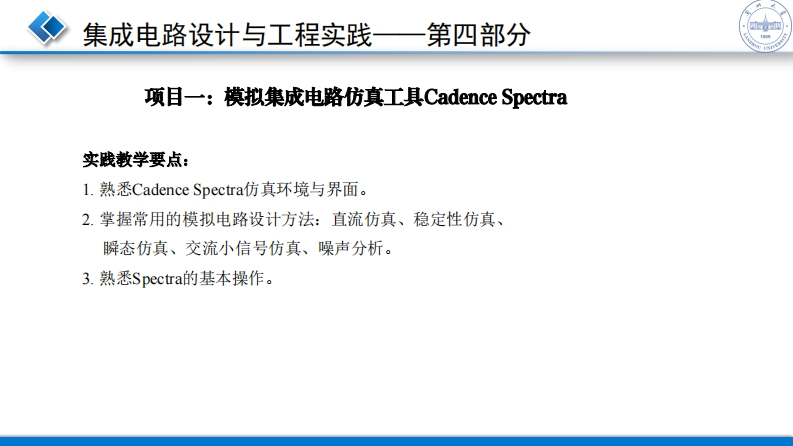 项目一模拟集成电路仿真工具CadenceSpectra348072@abc昨天发布关注私信0.40MB8页026项目一模拟集成电路仿真工具CadenceSpectra此内容为付费资源,请付费后查看¥16¥19黄金会员免费钻石会员免费立即购买您当前未登录!建议登陆后购买,可保存购买订单付费资源 第1页 / 共8页 第2页 / 共8页 第3页 / 共8页 试读已结束,还剩5页,您可下载完整版后进行离线阅读 THE END实用范文工程机械 文本预览 集成电路设计与工程实践一一第四部分19网项目一:模拟集成电路仿真工具Cadence Spectra主要知识点:L.Linx系统的基本操作。2.Spectra仿真设计方法。3.Spectra与其它EDA软件的连接。4.Spectra的基本操作。5.Spectra库中的基本器件。 查看更多 收起部分 喜欢就支持一下吧收藏