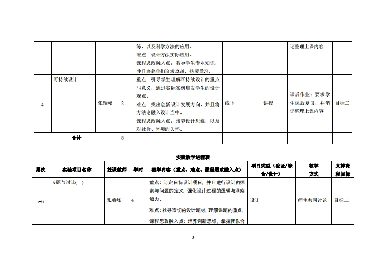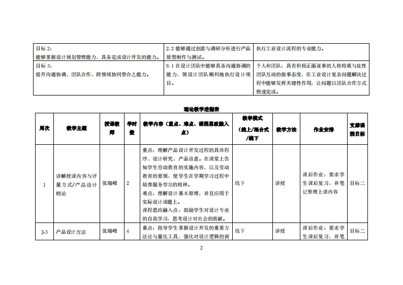 《项目化课程3》教学大纲课程名称:项目化课程3课程类别(必他选修):进修课英文名称:Project Based Course3总举时厕学时学分:32/22其中实验实度苹时:24先修课超:产品设计后续操程支排人机工程举授课时间:1-16周量期四1-2节授课地点:实218提课对◆2023级工业设计开课学瑞:事台产业科技学院任课数师姓名职琳张峰/讲师答疑时间、地点与方式:厕一至调五上班时间,213办公皇,讨论课程考核方式:开卷()闭卷()课程论文()其它(√)使用就材:产品设计程序与方法/主物言林海、酒洪凯/机械工业出版社/1SBN787-111-76179-2课短情介:为了培养学生工程实践能力与综合设计思维,具备现代工业设计师所需的专业知识与跨领域能力。课程将教授学生工业设计的理论知识,涵盖可持续设计、通用设计、设计美学等核心概念。学生将围绕「智能家居」展开设计实践,结合科技与人本需求,探索跨领域整合的创新设计方法,提升产品设计的功能性、智能化与市场适应性。课程数学目标及对毕业要求指标点的文排年课和微学目标支排单业要求指标点单业要求目标1:1.1掌握工业设计的基础知识,能清晰熟练运用设计基础知识,工业设计知识与美学知培养具有工业设计与产品设计知识技能的专业设计人才。地将设计想法呈现。识的能力。