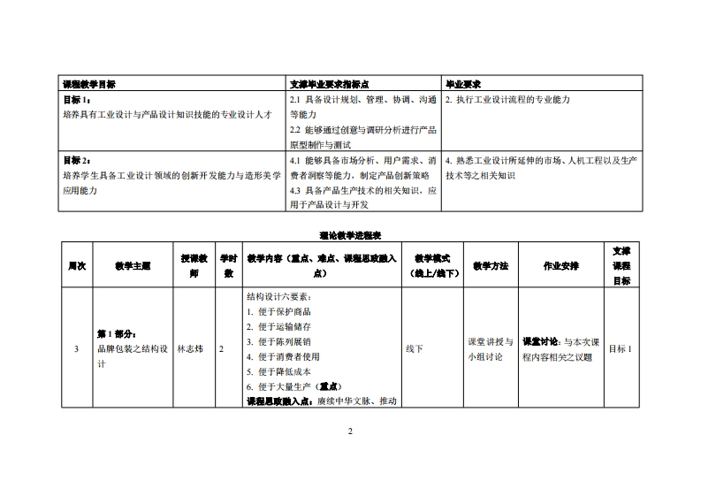 《项目化课程4》教学大纲课程名称:项目化课程4课密类别(必修选修),法修课程漢文名称:Project Based Course4总学时周学时学分,32/2/2其中实险实液学时:24先继课是:平面设计、艺术与设计营销后续课程支排作品集设计、文化创意设计授课时间:周四2-4节3-12周、34节]13-13周授课地点:机电楼303机房提课对律:2022级工业设计开裸学晓粤台产业科技学院工业设计系任课就姓名淋:林志炜/副教授答鞭时间、地点与方式:时间(课堂、课外)、地点(实验楼37、QQ)、方式(面谈、QQ)课程考核方式:开卷()闭卷()课程论文()其它()使用村,《包装设计》,李娟、邓婧、梁黎、姚田编,清华大学出版社,2023年2月,ISBN:9787302623533放学诗资料:课程情介:本课程各阶段相关理论讨论及各项实践作业都是采取小组团队的方式来进行,小组团队共同进行一系列实战,包含:拟定包装设计之主题、概念,并从中规划出最合适的品碑包装设计与品碑形象策略:接着绘制品牌包装设计之平面设计草图与立体设计草稿,然后再从平面设计草图与立体设计草稿中做出评估、汇整进择出好的包装设计方案:后续制作出实际尺寸的品碑包装设计立体模型,并从中加以评估、修政与调整,以确认包装设计的准确性、安全性与完整性之后开始制作、绘制正式版的包装设计稿件、图样绘制,并制作相关包装标签及包装设计印刷之包装展开图设计稿件,以进行最终的包装设计图稿整合:最后将包装设计稿件送至制作厂商进行包装印刷制作之前,再进行相关设计著作权、文字字体与设计图稿确认、印刷与颜色确认、设计软件兼容度等的校对工作,才能完成本课程的品碑包装设计作品。课程教学目标及对毕业要求指标点的支排: