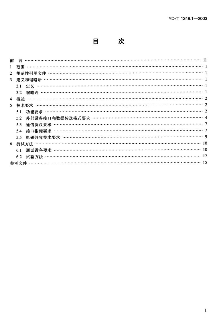 IcsYD中华人民共和国通信行业标准YD/T1248.1-2003固定电话网短消息业务第一部分短消息终端侧技术要求和测试方法Short Message Service Based on PSTNPart1:Technical Requirements and Testing Methods of Short MessageTerminal Equipment2003-01-22发布2003-01-22实施中华人民共和国信息产业部发布