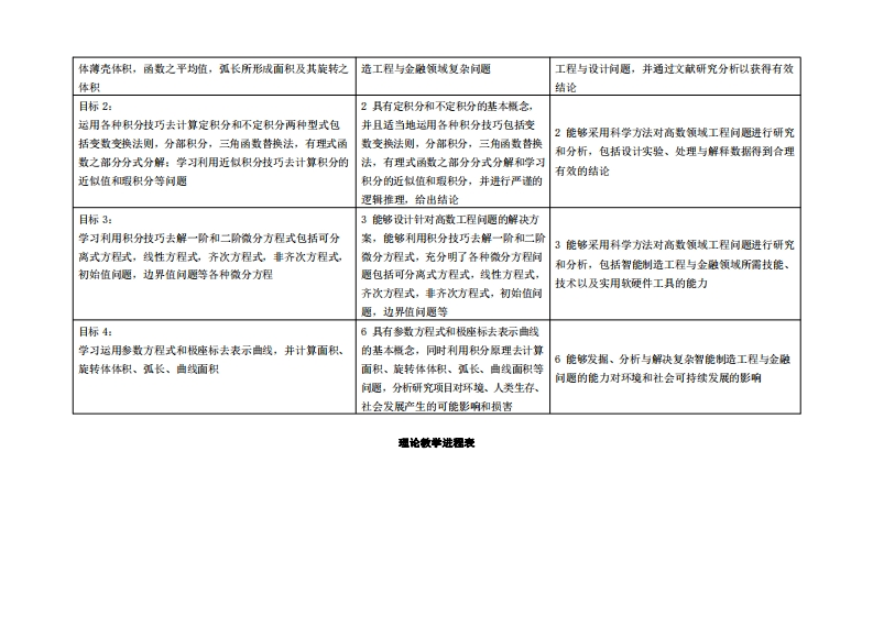 《高等数学》教学大纲课程名称:高你妆学课程类别(必修选修):必修裸程英文名称,Calculus总学时/圆学时/学分:805/5其中实融实液学时:无先棒课程:高中数学后续课程支撑:钱性代数:振率论与表理统计裸时间:2022-23学年,第一学期授课地点:机电楼312授课对橡:22级工业设计、22级金融1班开课学陕:粤台产业科技学院任课敏师姓名/职称:林录佑/做授答凝时间、地点与方式:特捷,Oce课程考核方式:开卷()闭卷()裸程论文()其它()使用敏材:James Stewart,Calculus 7雅Edition敏学考资料:高等叛半,同济大学叛学系。第七板课程情介:高等数学是我校的一门量要基础理论的课是。通过本课程的学习,使学生系统地获得一元西数徽积分的基本知识和理论:本课程置点学习西敏、极限、走峡、导敢、积分(不定积分、定积分)、撒分方程、毒敏曲战和极座标,并注置培养学生熟依的运算能力和较强的抽拿巴雄能力、逻操推理能力、几何直观和空间想拿能力,从而使学生学会利用蒸础敏学知识去分析和解决一整工程、几何、力学和物理等方面的实际问愿,为学习后候课程和进一步扩大数学知识填定必要的兼学盖璃。课程敏学目标及对毕业要求指标点的支排:课理收学目标支排毕业要求指标点毕业要求目标1:1掌握高数学科中的基本定义、定理和1能够运用数学、基础科学和智能制造工程专业与