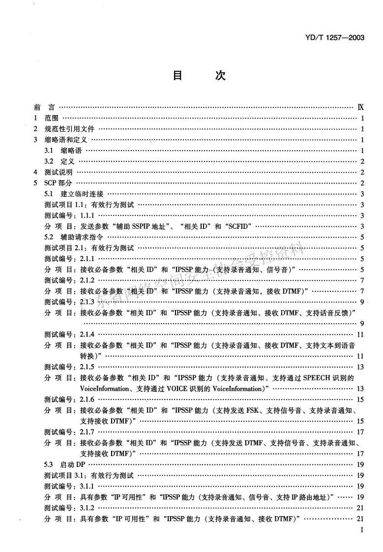 YD-T-1257-2003348072@abc4个月前发布关注私信6.39MB266页042YD-T-1257-2003此内容为付费资源,请付费后查看¥21¥31黄金会员免费钻石会员免费立即购买您当前未登录!建议登陆后购买,可保存购买订单付费资源 第1页 / 共266页 第2页 / 共266页 试读已结束,还剩264页,您可下载完整版后进行离线阅读 THE END标准规范 文本预览 YD中华人民共和国通信行业标准YD/T1257-2003智能网能力集1(CS-1)智能网应用规程(INAP)补充规定测斌方法全协会Test specification of supplementary specification of IN CS-1 INAP广东省网络2003-04-11发布2003-04-11实施中华人民共和国信息产业部发布 查看更多 收起部分 喜欢就支持一下吧收藏
