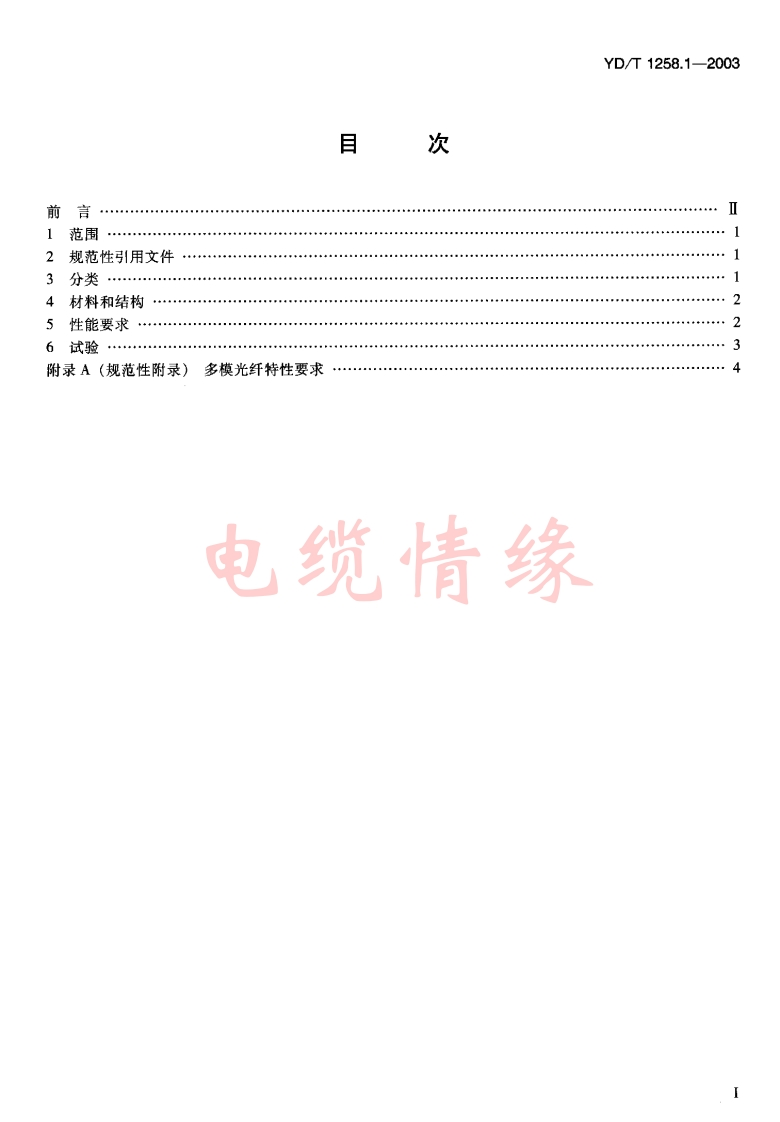 YD-T1258.1-2003348072@abc4个月前发布关注私信0.33MB8页029YD-T1258.1-2003此内容为付费资源,请付费后查看¥21¥31黄金会员免费钻石会员免费立即购买您当前未登录!建议登陆后购买,可保存购买订单付费资源 第1页 / 共8页 第2页 / 共8页 试读已结束,还剩6页,您可下载完整版后进行离线阅读 THE END标准规范 文本预览 1CS33.180.10M33YD中华人民共和国通信行业标准YD/T1258.1-2003室内光缆系列第一部分:总则The series of indoor optical fibre cablespart 1:general2003-04-11发布2003-04-11实施中华人民共和国信息产业部发布 查看更多 收起部分 喜欢就支持一下吧收藏