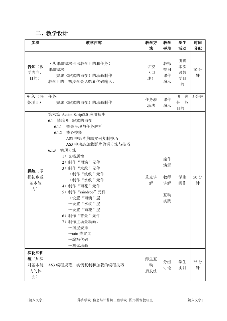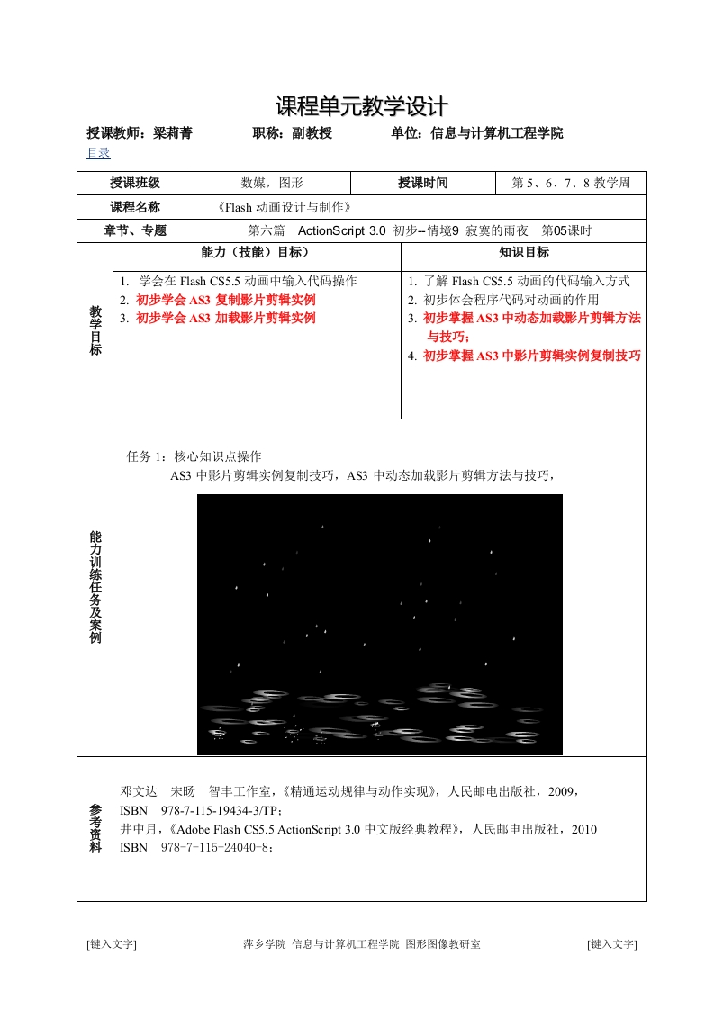 Flash教案_第六篇348072@abc11小时前发布关注私信0.42MB14页039Flash教案_第六篇此内容为付费资源,请付费后查看¥9¥19黄金会员免费钻石会员免费立即购买您当前未登录!建议登陆后购买,可保存购买订单付费资源 第1页 / 共14页 第2页 / 共14页 第3页 / 共14页 试读已结束,还剩11页,您可下载完整版后进行离线阅读 THE END网站设计高考真题 文本预览 F引ash动画设计与制作教案教案编制:梁莉菁@装Flash CS5.5经典动画制作教程生1能起直图面同指家子:■型为以是家人教材:《Flash CS5.5经典动画制作教程》主编:梁莉菁廖德伟1SBN:978-7-115-28713-7人民邮电出版社 查看更多 收起部分 喜欢就支持一下吧收藏