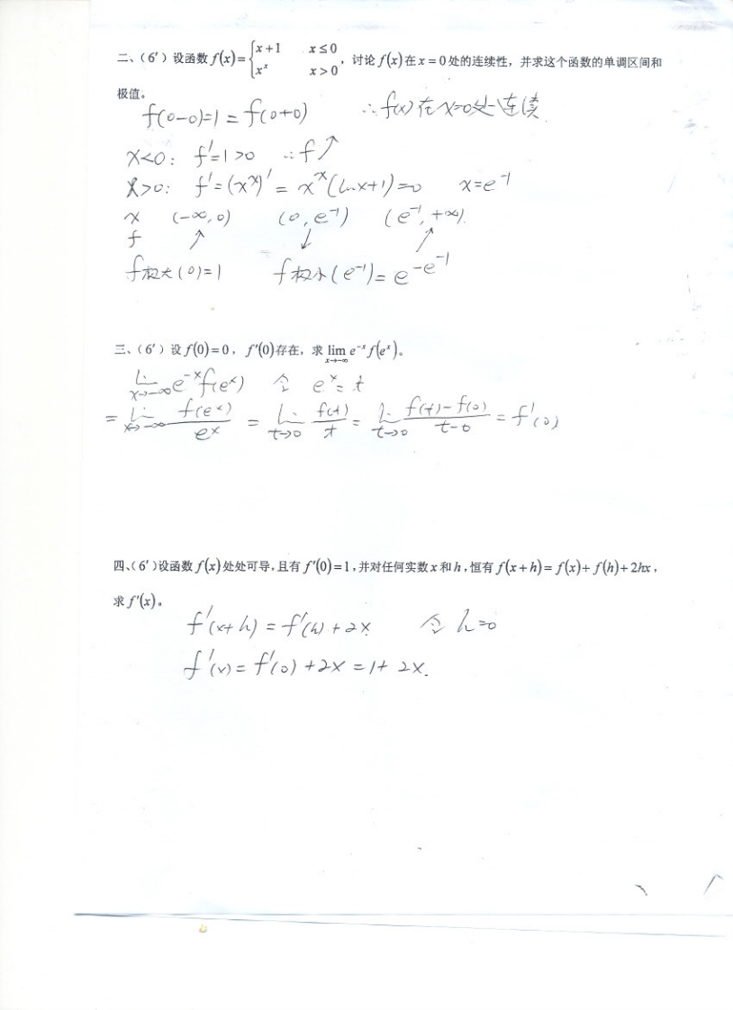 复且大学数学科学学院年第一学期期末考试试卷2007~2008学□A卷课程名称_高等数学C(上)开课院系_考试形式_闭卷数学科学学院课程代码_MATH120005.02348072@abc12小时前发布关注私信0.62MB6页026复且大学数学科学学院年第一学期期末考试试卷2007~2008学□A卷课程名称_高等数学C(上)开课院系_考试形式_闭卷数学科学学院课程代码_MATH120005.02此内容为付费资源,请付费后查看¥9¥19黄金会员免费钻石会员免费立即购买您当前未登录!建议登陆后购买,可保存购买订单付费资源 第1页 / 共6页 第2页 / 共6页 第3页 / 共6页 试读已结束,还剩3页,您可下载完整版后进行离线阅读 THE END网站设计高考真题 文本预览 复旦大学数学科学学院2007~2008学年第一学期期末考试试卷□A卷课程名称:高等数学C(上)课程代码:MATH120005.02开课院系:数学科学学院考试形式:闭卷姓名:学号:专业:医学题号12345689101112总分得分一、求极限(6×3)e-?-11.lim-xIn(1+5x)sinnlim3-aa>a⊥x2 查看更多 收起部分 喜欢就支持一下吧收藏