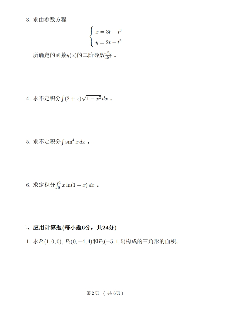 ,,,,,,,,,,,,,,,,,,,,,,,,,,,,,,,,,,,,,复旦大学数学科学学院2010~2011学年第一学期期末考试试卷口A卷课程名称:高等数学B(上)课程代码:MATH120003开课院系:数学科学学院考试形式:闭卷姓名:学号:专业:题目1235678总分得分装订线内不要答题一、计算题(每小题6分,共36分)》1.求lim2n+sinn。,,,,,,,,,,,,,,,,,,,,,,,,,,,,,,,,,,,,,,2.求limIn(1+x)-xo zIn(1+),,,,,,,,,,,,,,,,,,,,,,,,,,,,,,,,,,,,,第1页(共6页)