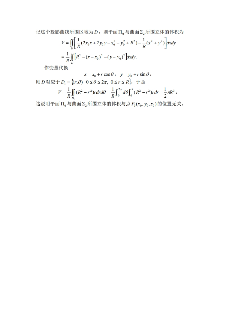 复旦大学数学科学学院2011~2012学年第二学期期末考试试卷《高等数学A》(下)试题(答案)1.(本题满分42分,每小题7分)(1)1x+y xdy-ydx6b2.(本题满分8分)在点a2+b2+c2’a2+b2+c2’a2+b2+c取最小值1a2+b2+c2装订3.(本题清分10分)无=-l川=-cm宁+C.线4.(本题满分10分)2π(e2-1)。内不要5.(本题满分10分)(1).()=x-1x“+1(n=2,3,…)。n+1n(n+1)答题(2)级数∑y.(0)nn收敛。=26.(本题满分12分)(1)f)~2+2受mn-cosnx:ππ后台n(2),之s1n2n9=元-p,sinng、1nm2产=i-).7.(本题满分8分)证对于,上任一点P(xo,0),2,在P点处的切平面Π。的方程为2xox+2%oy-e+(R2-x-y)=0。Π。与Σ,的交线为2xx+2%y-e+(R2-x0-y)=0,R=x2+y2,它在Oy平面的投影曲线为(x-x)2+(y-%)2=R2,z=0.