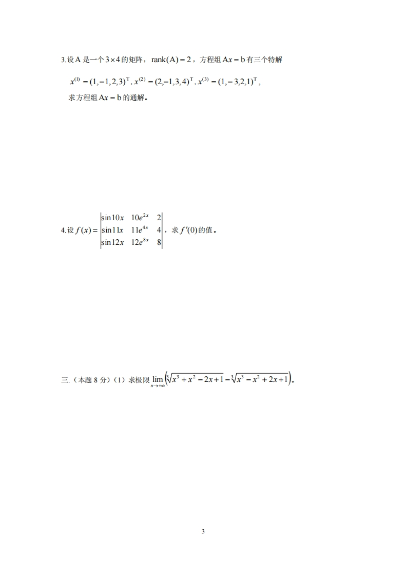 复旦大学数学科学院2012~2013学年第学期期末考试试卷卷A348072@abc10小时前发布关注私信0.20MB6页031复旦大学数学科学院2012~2013学年第学期期末考试试卷卷A此内容为付费资源,请付费后查看¥9¥19黄金会员免费钻石会员免费立即购买您当前未登录!建议登陆后购买,可保存购买订单付费资源 第1页 / 共6页 第2页 / 共6页 第3页 / 共6页 试读已结束,还剩3页,您可下载完整版后进行离线阅读 THE END网站设计高考真题 文本预览 复旦大学数学科学学院2012~2013学年第一学期期末考试试卷A卷课程名称:高等数学A(上)课程代码:MATH120001开课院系:数学科学学院考试形式:闭卷姓名:学号:专业:题号2345618总分得分一.(本题共24分,每小题6分)1.设函数y=f(x)由方程e+y-y=1确定,求二阶导数f"(0);2.计算4x+6一dx2+4x+5 查看更多 收起部分 喜欢就支持一下吧收藏