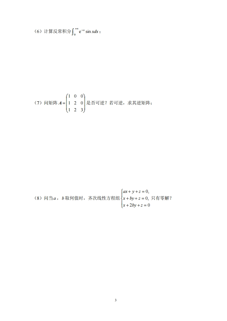 复旦大学数学科学院2013~2014学年第一学期期末考试试卷卷_1348072@abc10小时前发布关注私信0.35MB7页037复旦大学数学科学院2013~2014学年第一学期期末考试试卷卷_1此内容为付费资源,请付费后查看¥9¥19黄金会员免费钻石会员免费立即购买您当前未登录!建议登陆后购买,可保存购买订单付费资源 第1页 / 共7页 第2页 / 共7页 第3页 / 共7页 试读已结束,还剩4页,您可下载完整版后进行离线阅读 THE END网站设计高考真题 文本预览 复旦大学数学科学学院2013~2014学年第一学期期末考试试卷A卷课程名称:高等数学A(上)课程代码:MATH120001开课院系:数学科学学院考试形式:闭卷姓名:学号:专业:题号123456总分得分1.(本题满分48分,每小题6分)计算下列各题:装(1)设y=cos(Inx),求y";订线内不要答题(2)求极限1imx-sinxr+0x3 查看更多 收起部分 喜欢就支持一下吧收藏