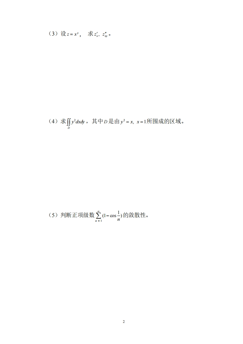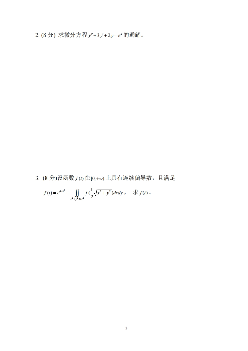 复旦大学数学科学院2014~2015学年二学期期末考试试卷卷348072@abc22小时前发布关注私信0.19MB8页035复旦大学数学科学院2014~2015学年二学期期末考试试卷卷此内容为付费资源,请付费后查看¥9¥19黄金会员免费钻石会员免费立即购买您当前未登录!建议登陆后购买,可保存购买订单付费资源 第1页 / 共8页 第2页 / 共8页 第3页 / 共8页 试读已结束,还剩5页,您可下载完整版后进行离线阅读 THE END网站设计高考真题 文本预览 复旦大学数学科学学院2014~2015学年第二学期期末考试试卷A卷课程名称:高等数学C(下)课程代码:MATH120006开课院系:数学科学学院考试形式:闭卷题号12345678总分得分剑1.求下列各题(每小题8分,共40分)(1)求极限limanl+x2X+y】。(xy→0,0)x2+y2(2)设z=广sinpd,求全微分止。短栽 查看更多 收起部分 喜欢就支持一下吧收藏