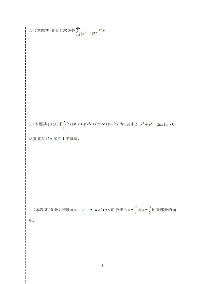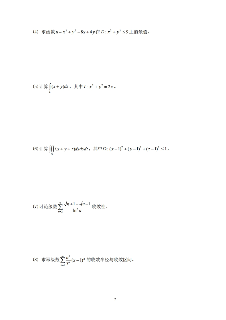 复旦大学数学科学院2015~2016学年第二学期期末考试试卷卷348072@abc12小时前发布关注私信0.26MB4页026复旦大学数学科学院2015~2016学年第二学期期末考试试卷卷此内容为付费资源,请付费后查看¥9¥19黄金会员免费钻石会员免费立即购买您当前未登录!建议登陆后购买,可保存购买订单付费资源 第1页 / 共4页 第2页 / 共4页 第3页 / 共4页 试读已结束,还剩1页,您可下载完整版后进行离线阅读 THE END网站设计高考真题 文本预览 复旦大学数学科学学院2015~2016学年第二学期期末考试试卷A卷课程名称:高等数学(A)(下)课程代码:MATH120002开课院系:数学科学学院考试形式:闭卷题号234567总分得分剑1.(本题共40分,每小题5分)计算下列各题中(①)设z=xe+,求0。图制数(2)解方程y"-3y'+2y=x2。北紧③)求椭球面号+兰+云-1在点-1D处的切平面方程。款2441 查看更多 收起部分 喜欢就支持一下吧收藏