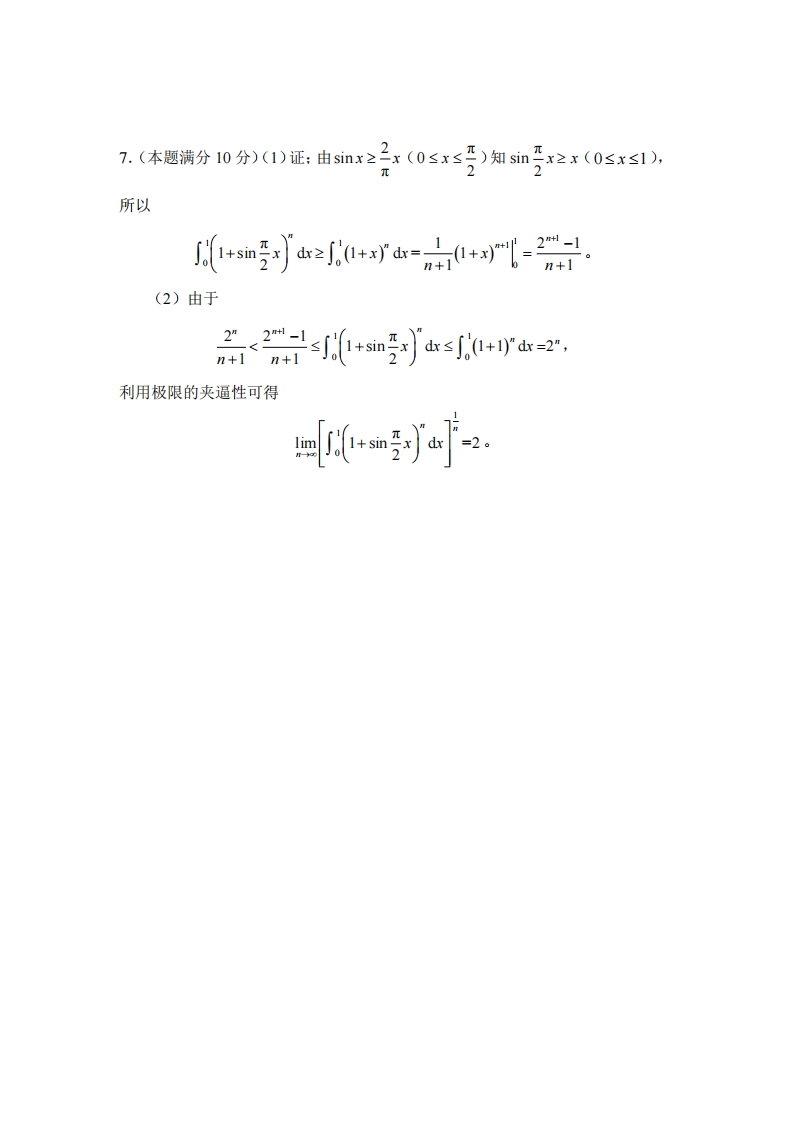 复旦大学数学科学学院2015~2016学年第一学期期末考试试卷《高等数学C(I)》试题答案1.(本题满分40分,每小题5分)()a=-:(2)±6:(3)5(4)在(-l,e-1]上单调减少,在[e1-l,+o)上单调增加:f(e-1)=-e为极小值:14833212.(本题满分10分)3个。装订3.(本题满分10分)底面半径和高均为,厂线内4.(本题满分10分)A=2,B=1,C=不4⊙要5.(本题满分10分)证:作函数答题31则当x∈(-1,+o)时,f'(x)=-1+x-x2+x31+x-1-x0+2)=1=0-rX1+)1+x1+x>01+x这说明函数f在[0,+∞)上严格单调增加,从而当x>0时,f(x)>f(0)=0,即6.(本题满分10分)(1)f(x)=28x6+cx(c为任意常数):(2)无拐点:(3)不存在。