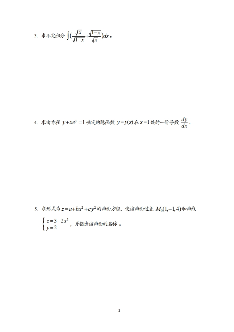 复旦大学数学科学院2017~2018学年一学期期末考试试卷卷(共八页)348072@abc6小时前发布关注私信0.48MB8页039复旦大学数学科学院2017~2018学年一学期期末考试试卷卷(共八页)此内容为付费资源,请付费后查看¥9¥19黄金会员免费钻石会员免费立即购买您当前未登录!建议登陆后购买,可保存购买订单付费资源 第1页 / 共8页 第2页 / 共8页 第3页 / 共8页 试读已结束,还剩5页,您可下载完整版后进行离线阅读 THE END网站设计高考真题 文本预览 复旦大学数学科学学院2017~2018学年第一学期期末考试试卷A卷(共八页)课程名称:高等数学B(上)课程代码:MATH120003开课院系:数学科学学院考试形式:闭卷题号三四五六七八九总分得分(36分,每小题6分,共6小题)1.求极限mln(1+x)h(1+之)的值。并2.设常数a>0,a≠l,已知fx)=anx+nwa,求导数f(x)。1 查看更多 收起部分 喜欢就支持一下吧收藏