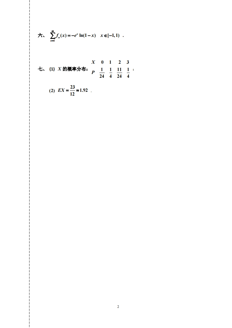 复旦大学数学科学院二学期期末考试试卷2017~2018学年第答案A卷348072@abc13小时前发布关注私信0.40MB2页037复旦大学数学科学院二学期期末考试试卷2017~2018学年第答案A卷此内容为付费资源,请付费后查看¥9¥19黄金会员免费钻石会员免费立即购买您当前未登录!建议登陆后购买,可保存购买订单付费资源 第1页 / 共2页 第2页 / 共2页 已完成全部阅读,共2页 THE END网站设计高考真题 文本预览 复旦大学数学科学学院2017~2018学年第二学期期末考试试卷A卷答案1、4.剑13、2(3cos1+sin 1-sin 4).4、收敛.如制长5,f(x)=-cosx+sinx+e*.召1976、0.6567;196oror0.9949.300197浙器二、dh=e (ydx +xdy)e2-2三、姬2戡四、3-8五、田fw=+2,xn-1sx6+42n+1(2)f1(0)=100:.1 查看更多 收起部分 喜欢就支持一下吧收藏