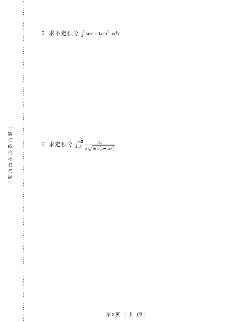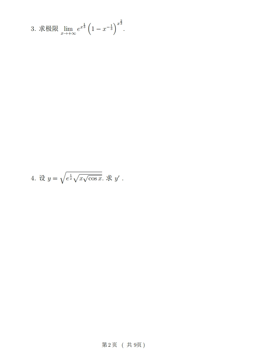 复旦大学数学科学院学期期末考试试卷2016~2017学年第卷348072@abc10小时前发布关注私信54.76KB9页040复旦大学数学科学院学期期末考试试卷2016~2017学年第卷此内容为付费资源,请付费后查看¥9¥19黄金会员免费钻石会员免费立即购买您当前未登录!建议登陆后购买,可保存购买订单付费资源 第1页 / 共9页 第2页 / 共9页 第3页 / 共9页 试读已结束,还剩6页,您可下载完整版后进行离线阅读 THE END网站设计高考真题 文本预览 复旦大学数学科学学院2016~2017学年第一学期期末考试试卷口A卷课程名称:高等数学B(上)课程代码:MATH120003开课院系:数学科学学院考试形式:闭卷题目二三四五六七总分得分装订线内不要答题一、计算题(每小题6分,共48分)1.求极限limn→+oo信+++)2.求极限lim,si血g-coszx01-V1-x2第1页(共9页) 查看更多 收起部分 喜欢就支持一下吧收藏