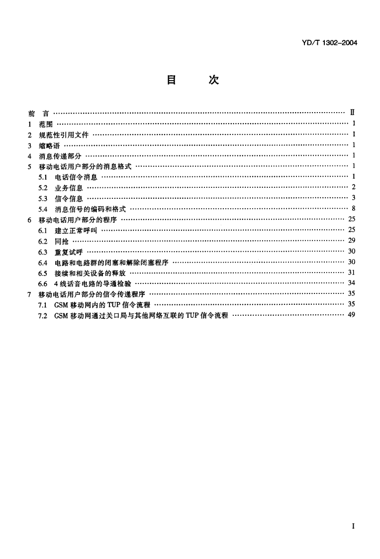 YD-T1302-2004348072@abc4个月前发布关注私信1.82MB59页043YD-T1302-2004此内容为付费资源,请付费后查看¥21¥31黄金会员免费钻石会员免费立即购买您当前未登录!建议登陆后购买,可保存购买订单付费资源 第1页 / 共59页 第2页 / 共59页 试读已结束,还剩57页,您可下载完整版后进行离线阅读 THE END标准规范 文本预览 YO中华人民共和国通信行业标准YD/T1302-2004国内No.7信令方式技术要求GSM移动电话用户部分(MTUP)National No.7 signalling system technical requirement-GSM mobile telephone user part (MTUP)2004-02-09发布2004-02-09实施中华人民共和国信息产业部发布 查看更多 收起部分 喜欢就支持一下吧收藏