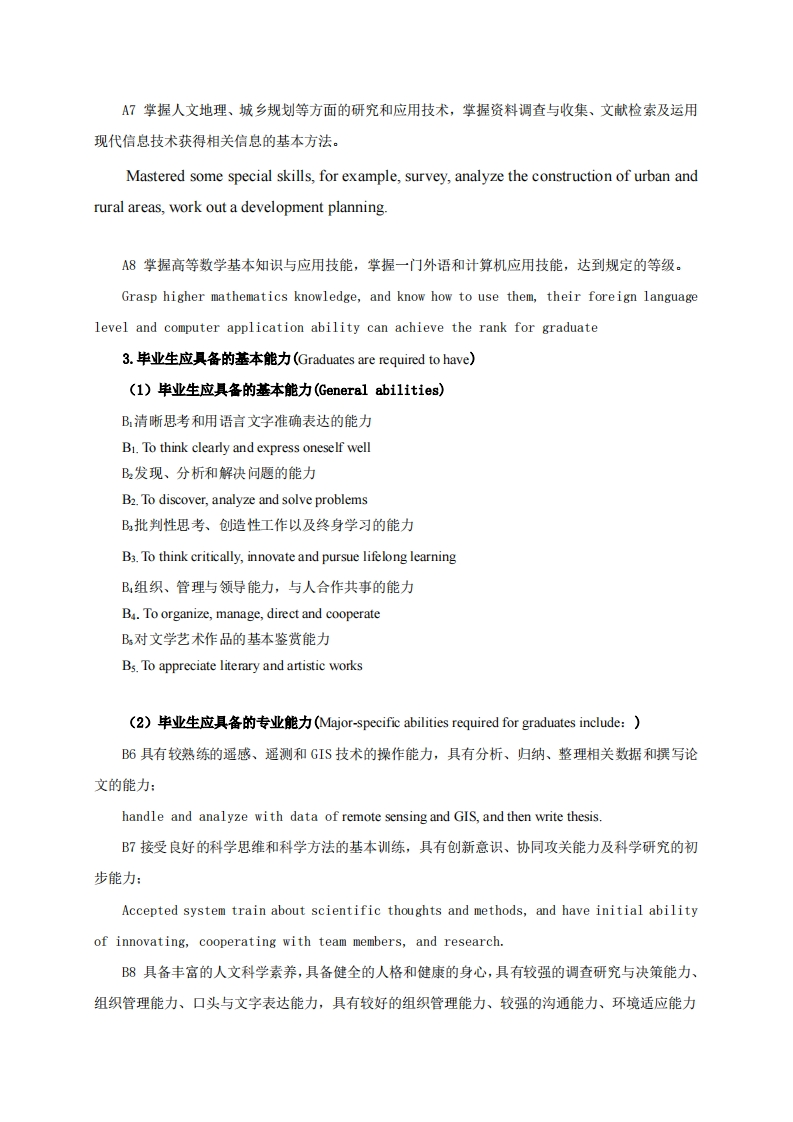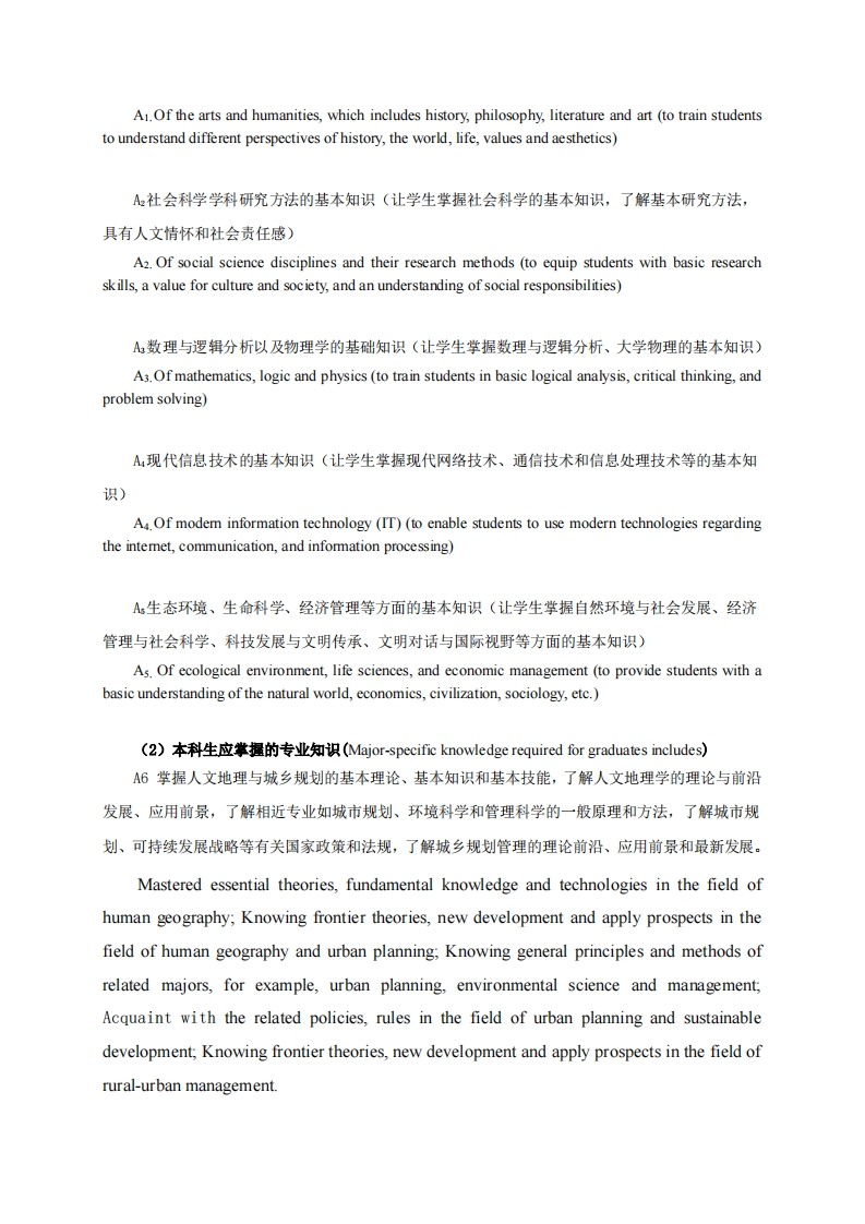 2014版人文地理与城乡规划专业培养方案Human Geography and Urban Planning专业代码(Major Code)::070503专业名称(Major Name):人文地理与城乡规划(Human Geography and Urban Planning)一、培养目标体系I.Objectives1.人才培养目标(Objectives),(I)基本培养目标(General0 bjectives)培养的学生身心健康、知识结构合理,有健全的人格、高尚的人文情怀和社会责任感,有一定的批判思维与创新能力、科学研究能力、语言文字表达能力、终身学习能力和组织管理能力,具有国际视野和团队合作精神。Students are nurtured to be both physically and psychologically healthy.They are expected to have awholesome personality,a value for humanistic pursuits,and a sense of social responsibility,as well as theability to think critically and innovatively,good writing and communication skills,an orientation towardslife-long leaming,and a proficiency in organization and management.Moreover,they should have aninternational mindset and be able to work well in a team context.(2)专y业培养目标Professional Training Goals)本专业培养具备人文地理与城乡规划管理的基本理论、知识和技能,具有创新精神和实践能力,接受严格科学思维的训练和良好的专业技能训练,立足于宏观、中观区域规划和土地管理,能在政府决策部门、企事业单位和科研院所从事环境开发、保护与规划,城乡建设与区域经济发展规划的复合型专业人才。Through strict training in this major for four years,the graduates can grasp the basic theory on humangeography and skill on urban planning.They become innovative and interdisciplinary talents in bothresearch fields and urban planning practices.They are familiar with region planning and land usemanagement at the level of macro and micro.They should be technical experts or managers in their workteams,for example,policy-making division,enterprises and busness,scientific and research institution,inthe fields of environmental protection,urban development,and regional planning.2.半业生应掌握的基本知识(Graduates are required to acquire)(I)毕业生应掌握的基本知识(Basic knowledge).A历史、哲学、文学、艺术等领域的基本知识(培养学生具有正确的历史观、世界观、人生观、价值观、审美观)。