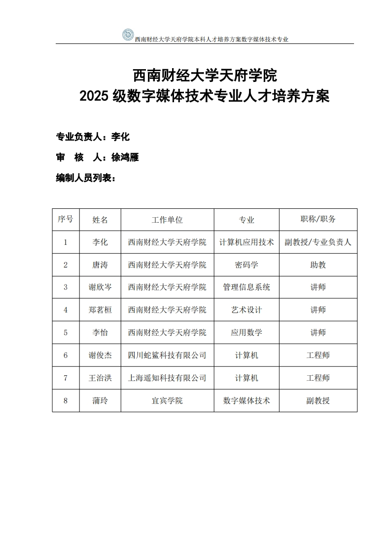2025级数字媒体技术专业本科人才培养方案348072@abc昨天发布关注私信0.49MB22页0202025级数字媒体技术专业本科人才培养方案此内容为付费资源,请付费后查看¥13¥29黄金会员免费钻石会员免费立即购买您当前未登录!建议登陆后购买,可保存购买订单付费资源 第1页 / 共22页 第2页 / 共22页 第3页 / 共22页 试读已结束,还剩19页,您可下载完整版后进行离线阅读 THE END办公模板员工培训 文本预览 @西南财经大学天府学院本科人才培养方案数字媒体技术专业。南财经大学天腊学险ANFU COLLEGE OF SWUEE西南财经大学天府学院数字媒体技术专业人才培养方案(2025级本科)版号:2025/1编制学院:智能科技学院审核人:徐鸿雁生效日期:2025年6月西南财经大学天府学院研究与发展处制二零二五年四月 查看更多 收起部分 喜欢就支持一下吧收藏
