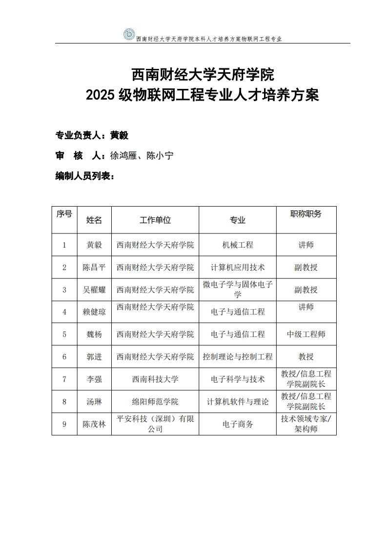 2025级物联网工程本科专业人才培养方案348072@abc6天前发布关注私信0.62MB27页0472025级物联网工程本科专业人才培养方案此内容为付费资源,请付费后查看¥13¥29黄金会员免费钻石会员免费立即购买您当前未登录!建议登陆后购买,可保存购买订单付费资源 第1页 / 共27页 第2页 / 共27页 第3页 / 共27页 试读已结束,还剩24页,您可下载完整版后进行离线阅读 THE END办公模板员工培训 文本预览 西南财经大学天府学院本科人才培养方案物联网工程专业。西南财绞大学天港学院olEgfo西南财经大学天府学院物联网工程专业人才培养方案(2025级本科)版号:2024/2编制学院:智能科技学院审核人:徐鸿雁、陈小宁生效日期:2025年6月西南财经大学天府学院研究与发展处制二零二五年四月 查看更多 收起部分 喜欢就支持一下吧收藏