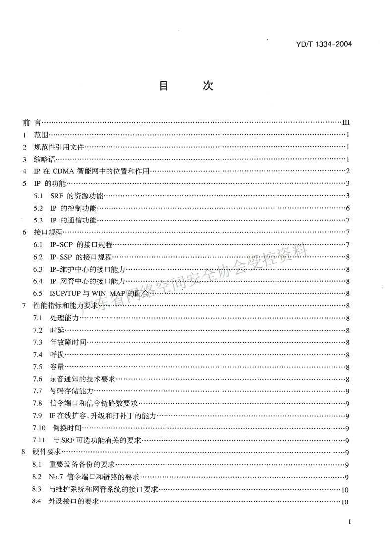 YD中华人民共和国通信行业标准YD/T1334-2004800 MHz CDMA数字蜂窝移动通信网无线智能网(WIN)阶段2料智能外设(P)设备技术要求Technical requirements of Intelligent Peripheral(P)equipment for Wireless Intelligent Network(WIN)phase2 in800MHz CDMA digital cellular mobile telecommunication network2004-12-22发布2005-03-01实施中华人民共和国信息产业部发布
