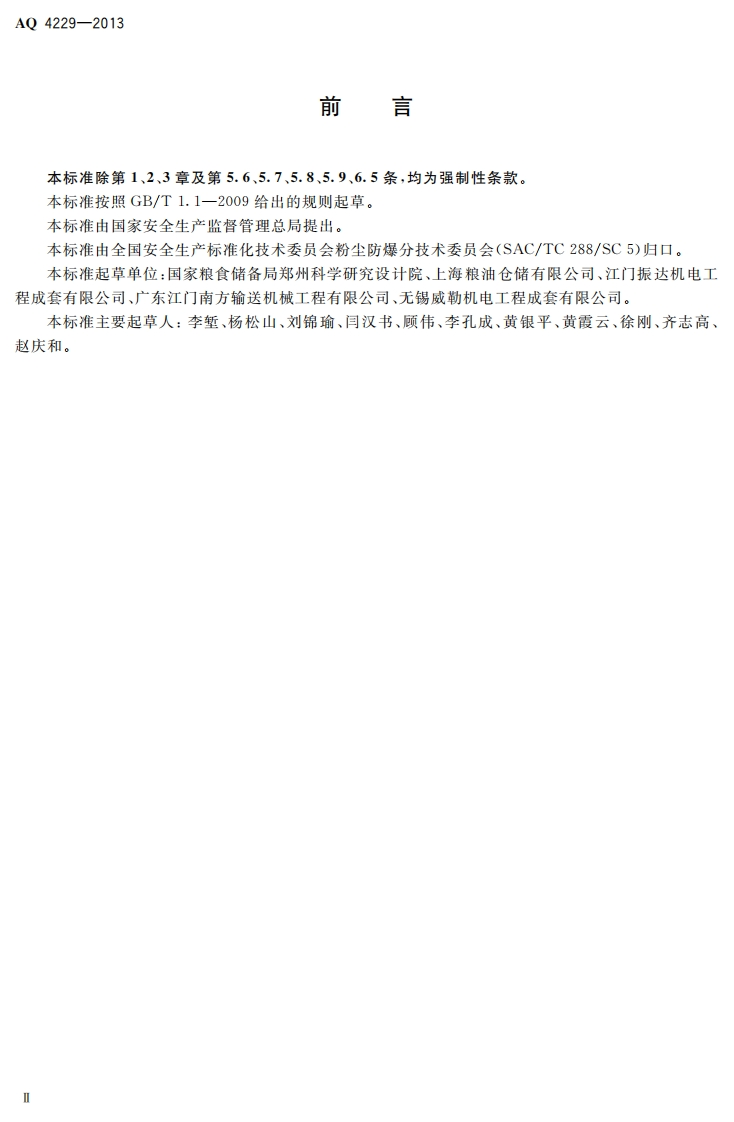 AQ4229-2013粮食立筒仓粉尘防爆安全规范348072@abc5天前发布关注私信0.74MB7页043AQ4229-2013粮食立筒仓粉尘防爆安全规范此内容为付费资源,请付费后查看¥13¥19黄金会员免费钻石会员免费立即购买您当前未登录!建议登陆后购买,可保存购买订单付费资源 第1页 / 共7页 第2页 / 共7页 第3页 / 共7页 试读已结束,还剩4页,您可下载完整版后进行离线阅读 THE END标准规范 文本预览 1CS13.230C67备案号:41160一2013AQ中华人民共和国安全生产行业标准AQ4229-2013粮食立筒仓粉尘防爆安全规范Safety specification for the protection of dust explosion for grain silos2013-06-08发布2013-10-01实施国家安全生产监督管理总局发布 查看更多 收起部分 喜欢就支持一下吧收藏