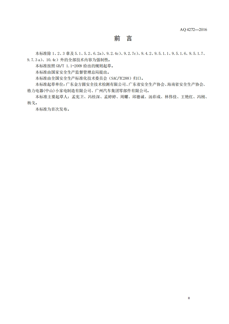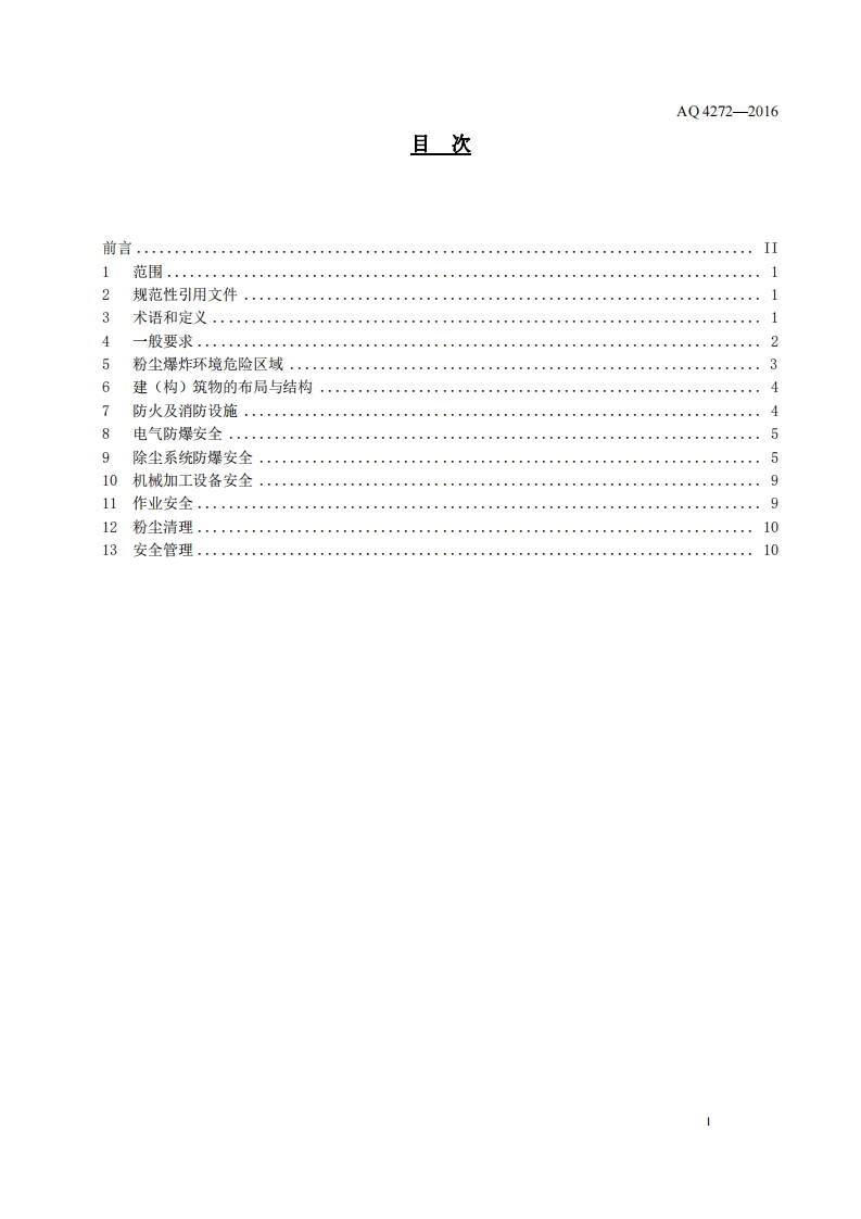 ICS13.100C65AQ中华人民共和国安全生产行业标准AQ4272-2016铝镁制品机械加工粉尘防爆安全技术规范Safety specifications for prevention of dust explosions from themechanical processing of aluminum and magnesium products2016-09-01发布2017-03-01实施国家安全生产监督管理总局发布