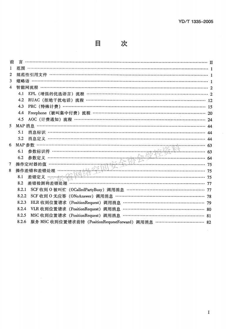 YD中华人民共和国通信行业标准YD/T1335-2005800 MHz CDMA数字蜂窝移动通信网无线智能网(WN)阶段2:接口技术要求800MHz CDMA digital,cellular mobile telecommunication networktechnical specification of Wireless Intelligent Network (WIN)Phase22005-01-14发布2005-05-01实施中华人民共和国信息产业部发布
