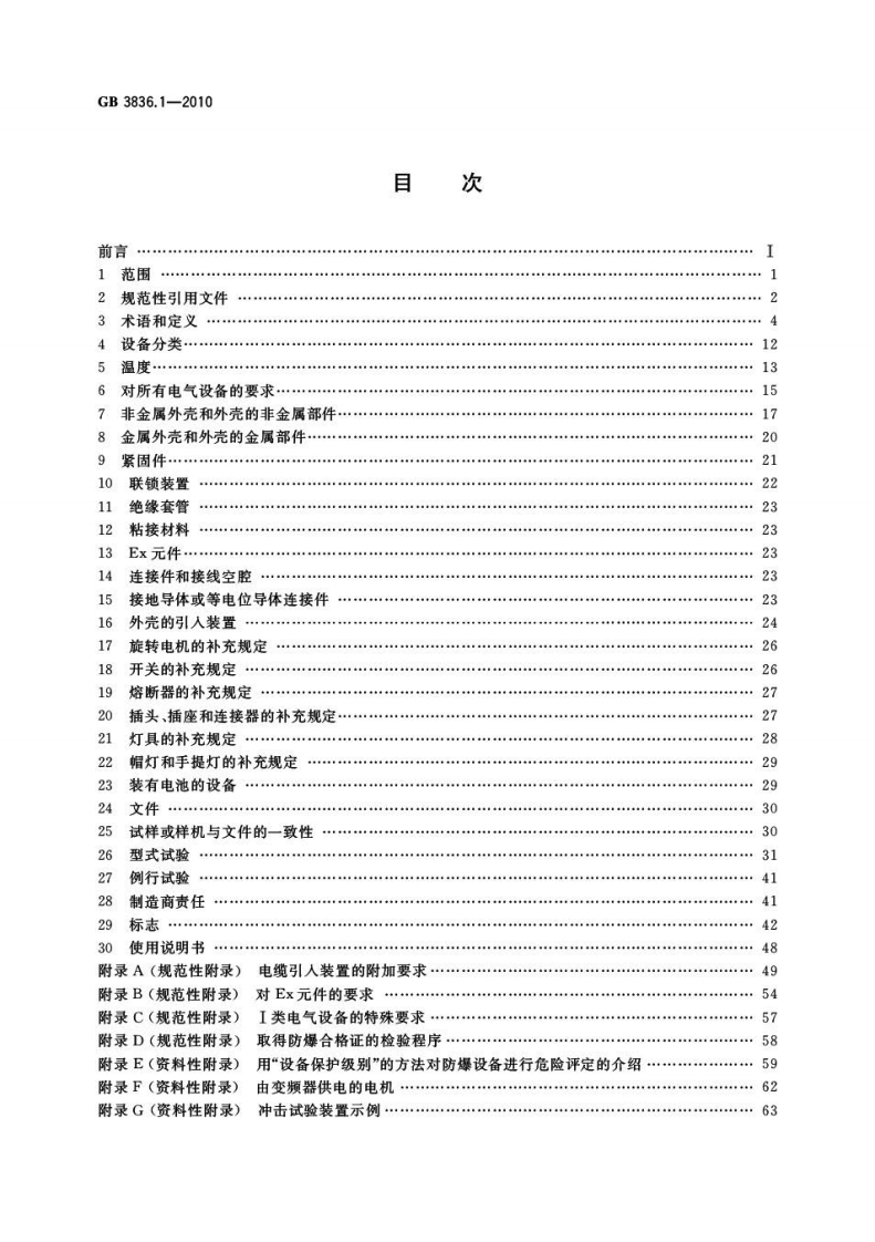 1Cs29.260.20K35GB中华人民共和国国家标准GB3836.1-2010代替GB3836.1一2000爆炸性环境第1部分:设备通用要求Explosive atmospheres-Part 1:Equipment-General requirements(IEC60079-0:2007,MOD)2010-08-09发布2011-08-01实施中华人民共和国国家质量监督检验检疫总局中国国家标准化管理委员会发布