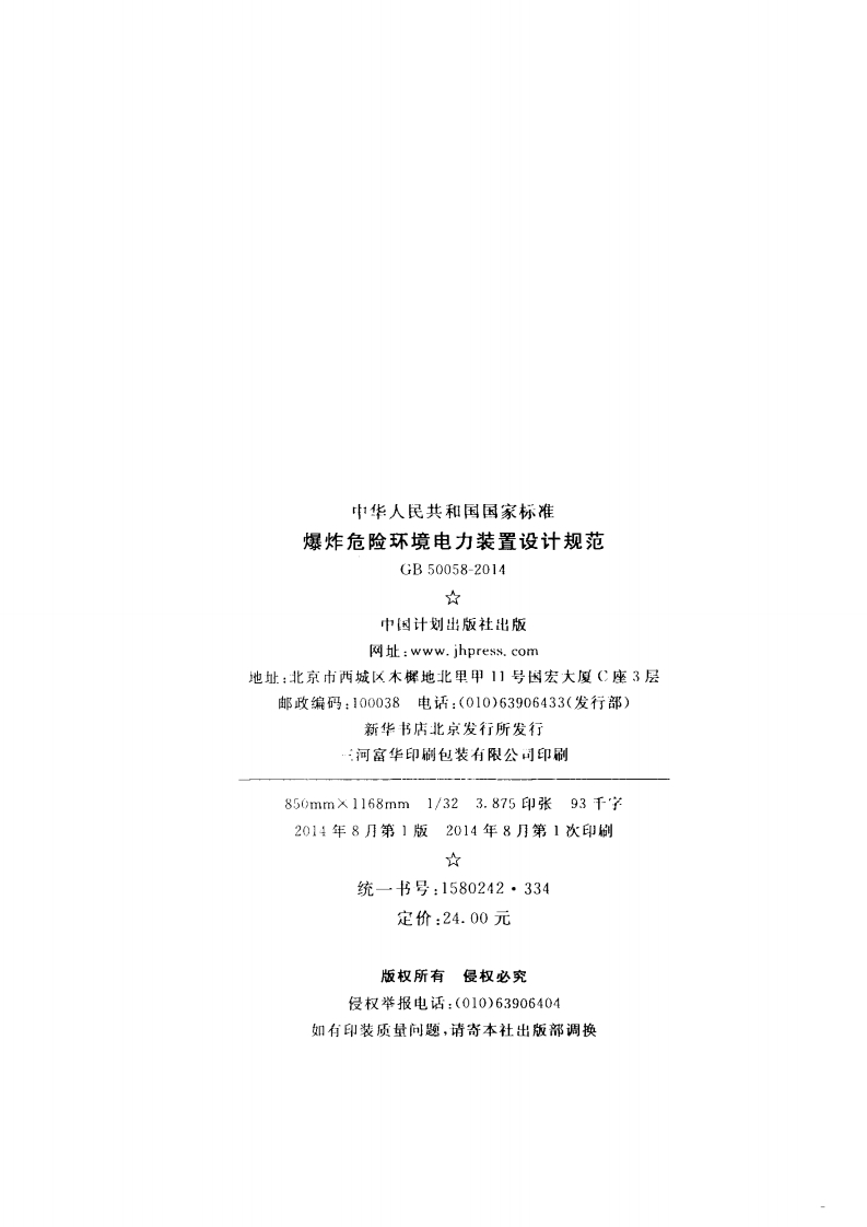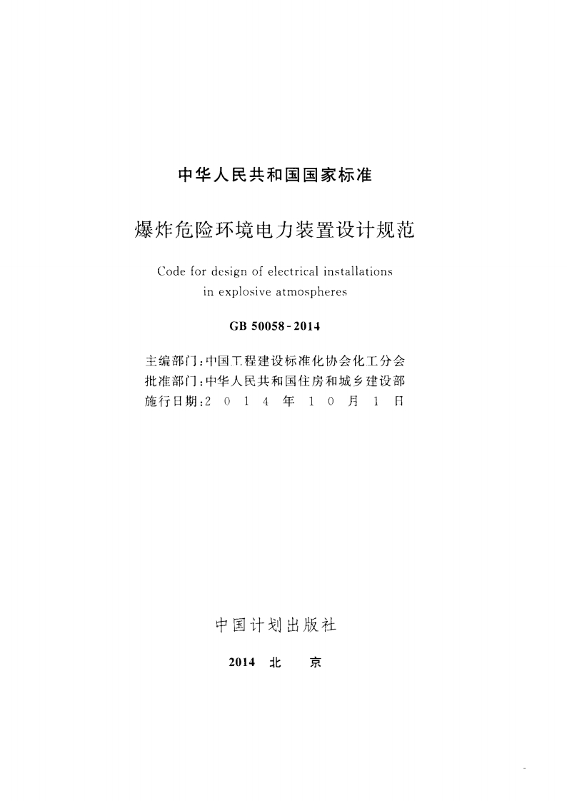 GB50058-2014爆炸与火灾危险场所电气装置设计标准348072@abc4天前发布关注私信2.67MB117页050GB50058-2014爆炸与火灾危险场所电气装置设计标准此内容为付费资源,请付费后查看¥13¥19黄金会员免费钻石会员免费立即购买您当前未登录!建议登陆后购买,可保存购买订单付费资源 第1页 / 共117页 第2页 / 共117页 第3页 / 共117页 试读已结束,还剩114页,您可下载完整版后进行离线阅读 THE END标准规范 文本预览 UDC中华人民共和国国家标准GBPGB50058-2014爆炸危险环境电力装置设计规范Code for design of electrical installationsin explosive atmospheres2014-01-29发布2014-10-01实施中华人民共和国住房和城乡建设部联合发布中华人民共和国国家质量监督检验检疫总局 查看更多 收起部分 喜欢就支持一下吧收藏
