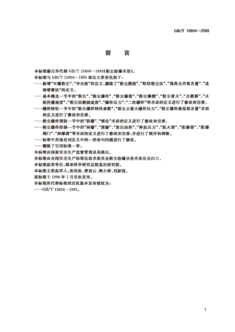 国标T15604-2008348072@abc5天前发布关注私信2.72MB9页044国标T15604-2008此内容为付费资源,请付费后查看¥13¥19黄金会员免费钻石会员免费立即购买您当前未登录!建议登陆后购买,可保存购买订单付费资源 第1页 / 共9页 第2页 / 共9页 第3页 / 共9页 试读已结束,还剩6页,您可下载完整版后进行离线阅读 THE END标准规范 文本预览 ICS13.230C67中华人民共和国国家标准GB/T15604-2008代替GB/T15604一1995粉尘防爆术语Terminology for dust explosion prevention2008-12-15发布2009-10-01实施中华人民共和国国家质量监督检验检疫总局中国国家标谁化管理委员会发布 查看更多 收起部分 喜欢就支持一下吧收藏