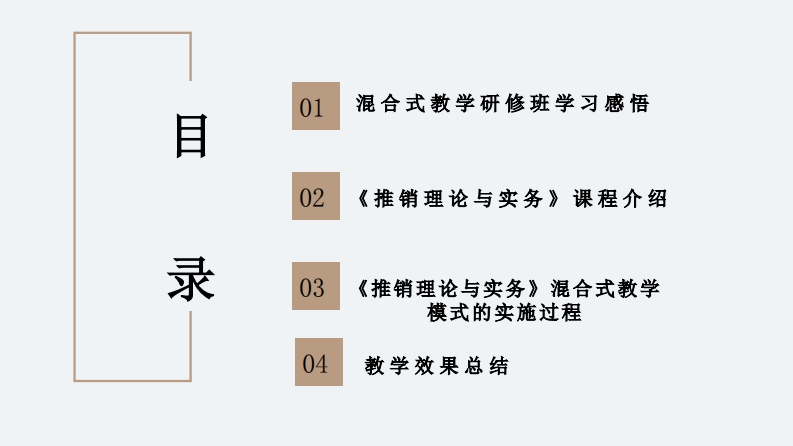 赵晶琴混合式教学模式培训小结348072@abc12小时前发布关注私信2.20MB15页038赵晶琴混合式教学模式培训小结此内容为付费资源,请付费后查看¥19¥23黄金会员免费钻石会员免费立即购买您当前未登录!建议登陆后购买,可保存购买订单付费资源 第1页 / 共15页 第2页 / 共15页 第3页 / 共15页 第4页 / 共15页 第5页 / 共15页 试读已结束,还剩10页,您可下载完整版后进行离线阅读 THE ENDPPT模板企业宣传员工培训 文本预览 混合式教学研修班学习分享一一以《推销理论与实务》为例教师:赵晶琴汇报时间:2022年8月26日 查看更多 收起部分 喜欢就支持一下吧收藏