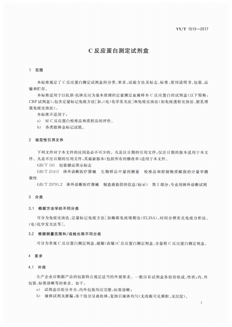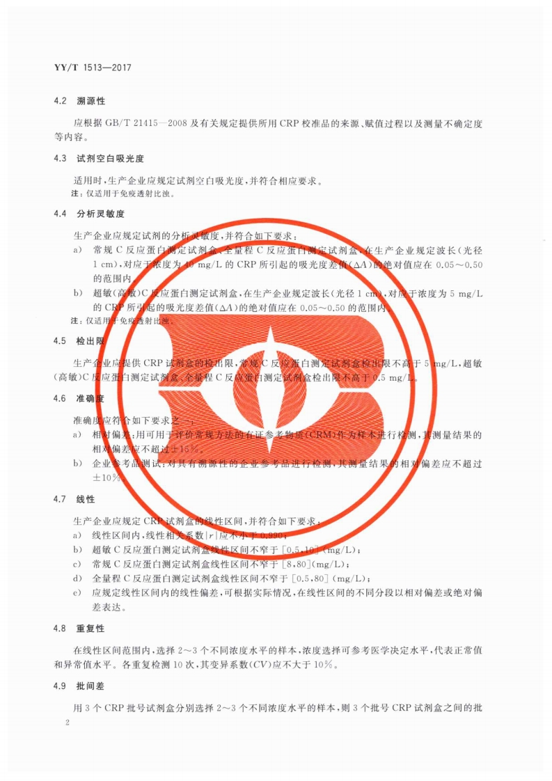 C反应蛋白检测试剂盒C-reactiveproteindetectionkit348072@abc4天前发布关注私信1.34MB9页037C反应蛋白检测试剂盒C-reactiveproteindetectionkit此内容为付费资源,请付费后查看¥13¥19黄金会员免费钻石会员免费立即购买您当前未登录!建议登陆后购买,可保存购买订单付费资源 第1页 / 共9页 第2页 / 共9页 第3页 / 共9页 第4页 / 共9页 第5页 / 共9页 试读已结束,还剩4页,您可下载完整版后进行离线阅读 THE END标准规范 文本预览 172mYY中华人民共和国医药行业标准YY/T1513-2017C反应蛋白测定试剂盒C-reactive protein testing kit2017-03-28发布2018-04-01实施Φ国家食品药品监督管理总局发布器查直 查看更多 收起部分 喜欢就支持一下吧收藏