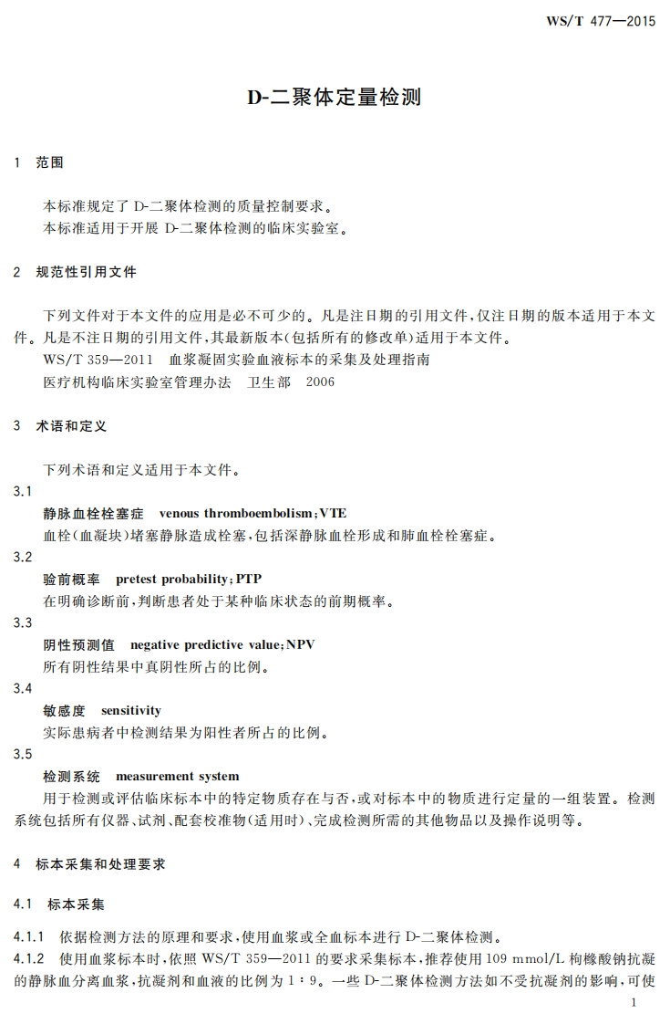 D-二聚体定量检测QuantitativeD-dimerassay348072@abc4天前发布关注私信0.61MB9页048D-二聚体定量检测QuantitativeD-dimerassay此内容为付费资源,请付费后查看¥13¥19黄金会员免费钻石会员免费立即购买您当前未登录!建议登陆后购买,可保存购买订单付费资源 第1页 / 共9页 第2页 / 共9页 第3页 / 共9页 第4页 / 共9页 第5页 / 共9页 试读已结束,还剩4页,您可下载完整版后进行离线阅读 THE END标准规范 文本预览 1CS11.020C50WS中华人民共和国卫生行业标准WS/T477-2015D-二聚体定量检测Quantitative D-dimer assay2015-11-06发布2016-05-01实施中华人民共和国国家卫生和计划生育委员会发布 查看更多 收起部分 喜欢就支持一下吧收藏