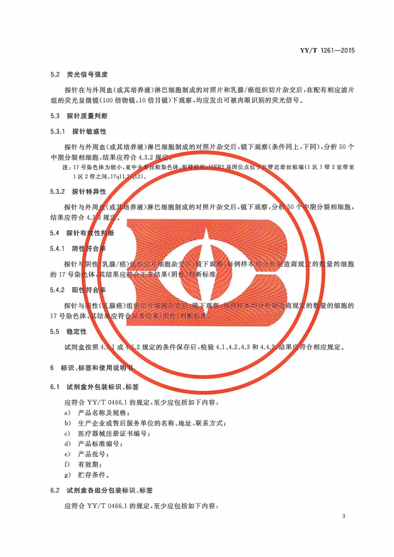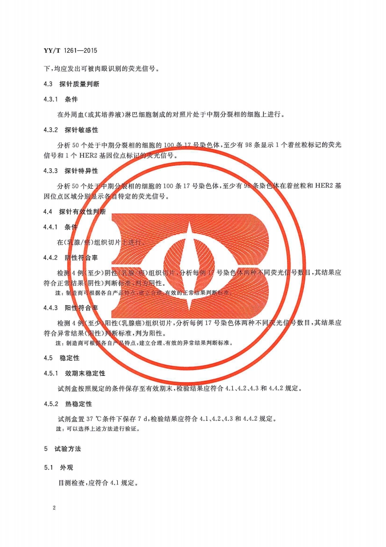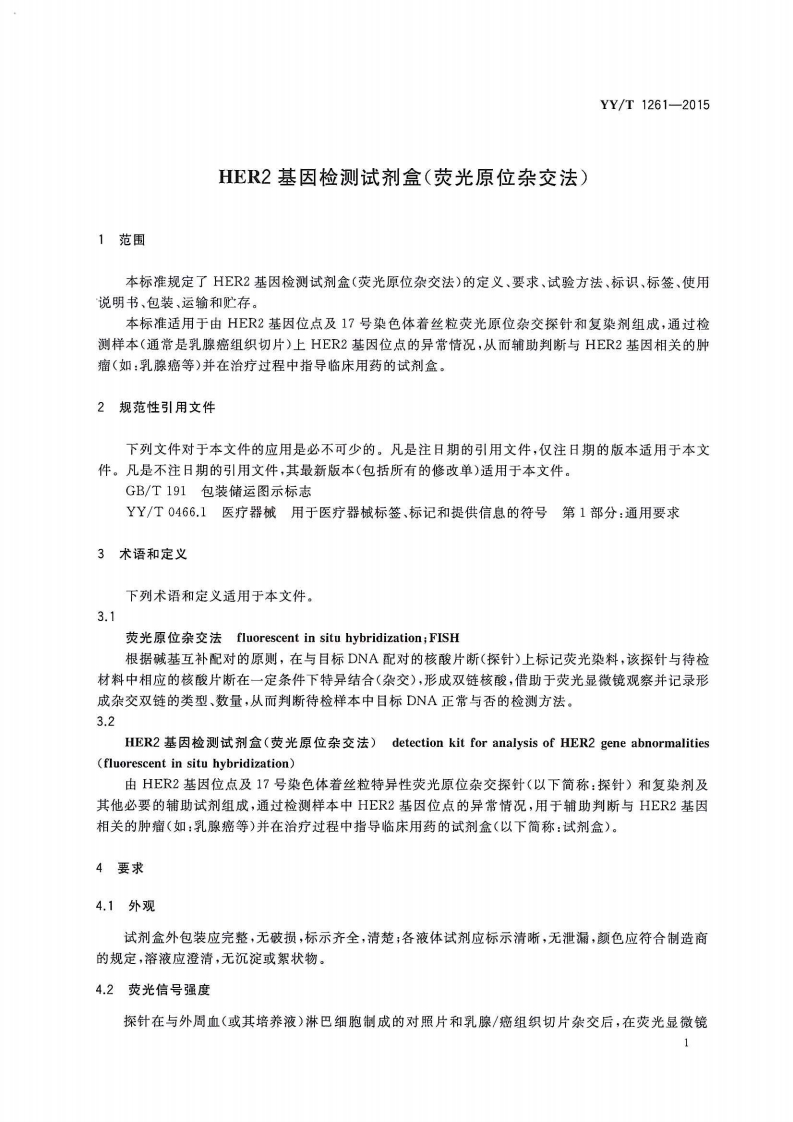 HER2基因检测试剂盒(荧光原位杂交法)DetectionkitforanalysisofHER2geneabnormalities(fluorescentinsituhybridization)348072@abc4天前发布关注私信1.32MB8页050HER2基因检测试剂盒(荧光原位杂交法)DetectionkitforanalysisofHER2geneabnormalities(fluorescentinsituhybridization)此内容为付费资源,请付费后查看¥13¥19黄金会员免费钻石会员免费立即购买您当前未登录!建议登陆后购买,可保存购买订单付费资源 第1页 / 共8页 第2页 / 共8页 第3页 / 共8页 第4页 / 共8页 第5页 / 共8页 试读已结束,还剩3页,您可下载完整版后进行离线阅读 THE END标准规范 文本预览 1339YY中华人民共和国医药行业标准YY/T1261-2015HER2基因检测试剂盒(荧光原位杂交法)Detection kit for analysis of HER2 gene abnormalities(fluorescent in situ hybridization2015-03-02发布2016-01-01实施国家食品药品监督管理总局Φ发布 查看更多 收起部分 喜欢就支持一下吧收藏