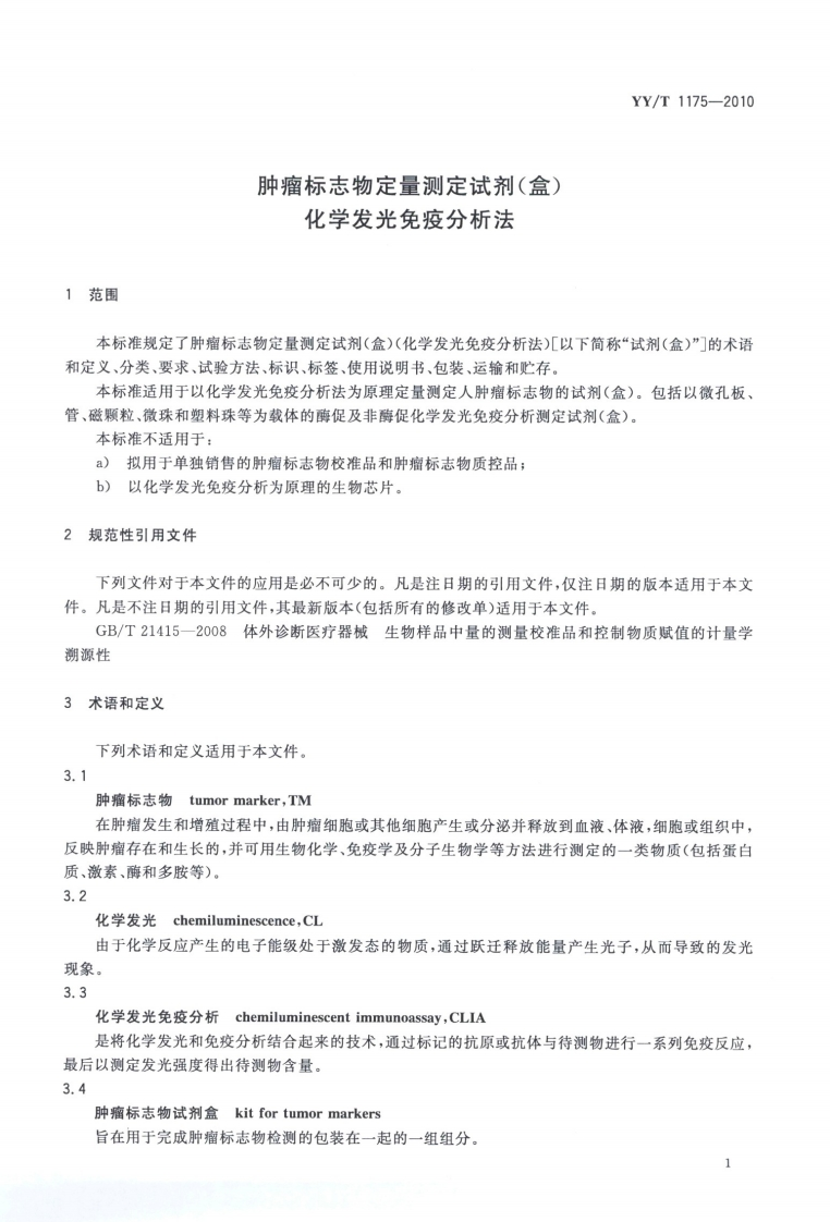 P溜你人单测不品化学发光免疫分析法Quantitativedetectionreagent(kit)fortumormarkersChemiluminescentimmunoassay发布2012-06-01实施国家食品药品监督管理局发布348072@abc4天前发布关注私信3.08MB11页022P溜你人单测不品化学发光免疫分析法Quantitativedetectionreagent(kit)fortumormarkersChemiluminescentimmunoassay发布2012-06-01实施国家食品药品监督管理局发布此内容为付费资源,请付费后查看¥13¥19黄金会员免费钻石会员免费立即购买您当前未登录!建议登陆后购买,可保存购买订单付费资源 第1页 / 共11页 第2页 / 共11页 第3页 / 共11页 第4页 / 共11页 第5页 / 共11页 试读已结束,还剩6页,您可下载完整版后进行离线阅读 THE END标准规范 文本预览 ICS11.100C44YY中华人民共和国医药行业标准YY/T1175-2010肿瘤标志物定量测定试剂(盒)化学发光免疫分析法Quantitative detection reagent (kit)for tumor markers-Chemiluminescent immunoassay2010-12-27发布2012-06-01实施国家食品药品监督管理局数码防伪发布 查看更多 收起部分 喜欢就支持一下吧收藏