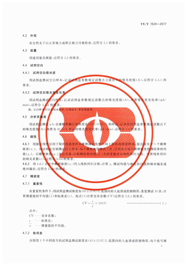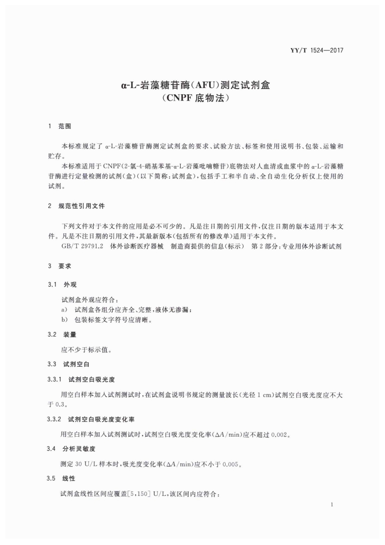 α-L-岩藻糖苷酶(AFU)检测试剂盒(CNPF底物法)348072@abc3天前发布关注私信1.25MB9页020α-L-岩藻糖苷酶(AFU)检测试剂盒(CNPF底物法)此内容为付费资源,请付费后查看¥13¥19黄金会员免费钻石会员免费立即购买您当前未登录!建议登陆后购买,可保存购买订单付费资源 第1页 / 共9页 第2页 / 共9页 第3页 / 共9页 第4页 / 共9页 第5页 / 共9页 试读已结束,还剩4页,您可下载完整版后进行离线阅读 THE END标准规范 文本预览 366ICS11.100C44YY中华人民共和国医药行业标准YY/T1524-2017o-L-岩藻糖苷酶(AFU)测定试剂盒(CNPF底物法)a-L-Fucosidase (AFU)assay kit(CNPF substrate method)2017-03-28发布2018-04-01实施国家食品药品监督管理总局发布 查看更多 收起部分 喜欢就支持一下吧收藏