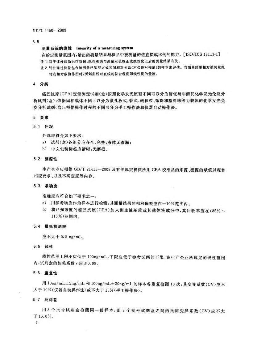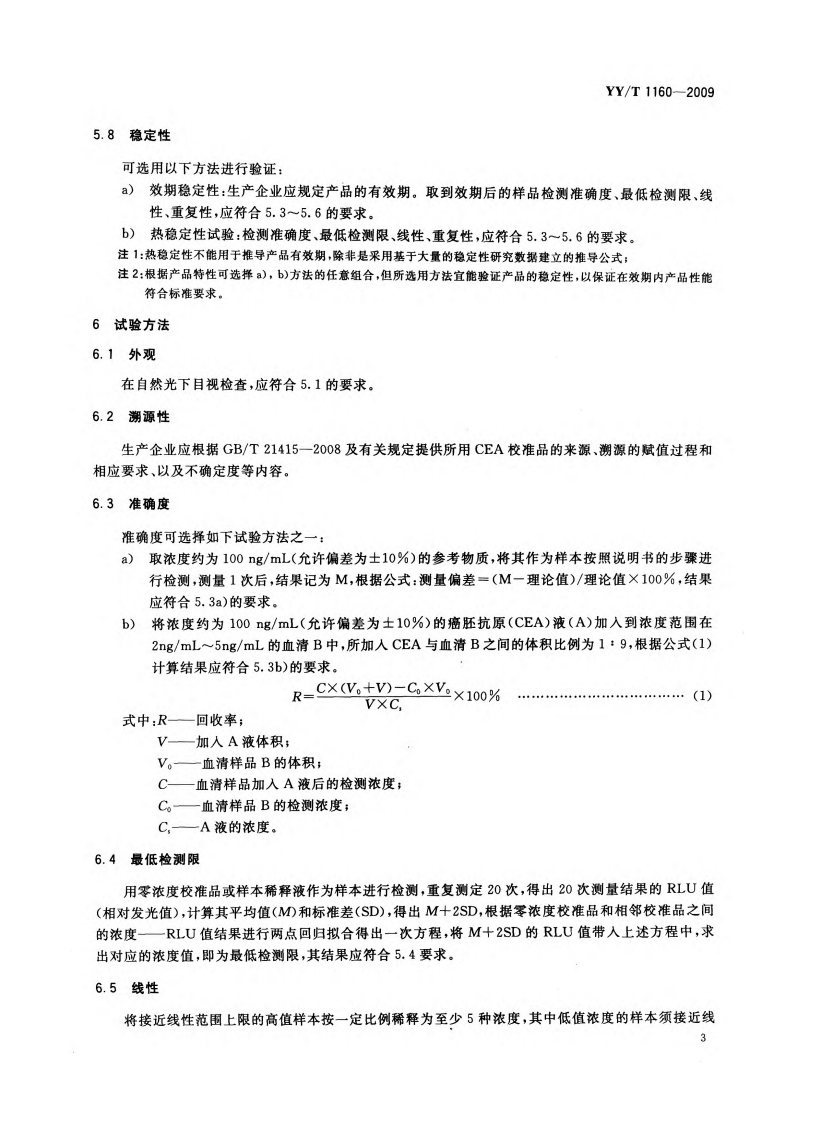 癌胚抗原(CEA)定量测定试剂(盒)(化学发光免疫分析法)CarcinoembryonicAntigenQuantitativeDetectionReagent(Kit)ChemiluminescentImmunoassay348072@abc3天前发布关注私信3.01MB10页035癌胚抗原(CEA)定量测定试剂(盒)(化学发光免疫分析法)CarcinoembryonicAntigenQuantitativeDetectionReagent(Kit)ChemiluminescentImmunoassay此内容为付费资源,请付费后查看¥13¥19黄金会员免费钻石会员免费立即购买您当前未登录!建议登陆后购买,可保存购买订单付费资源 第1页 / 共10页 第2页 / 共10页 第3页 / 共10页 第4页 / 共10页 第5页 / 共10页 试读已结束,还剩5页,您可下载完整版后进行离线阅读 THE END标准规范 文本预览 ICS11.100C44YY中华人民共和国医药行业标准YY/T1160-2009癌胚抗原(CEA)定量测定试剂(盒)(化学发光免疫分析法)Carcinoembryonic Antigen Quantitative Detection Reagent(Kit)(Chemiluminescent Immunoassay)2009-12-30发布2011-06-01实施国家食品药品监督管理局发布 查看更多 收起部分 喜欢就支持一下吧收藏