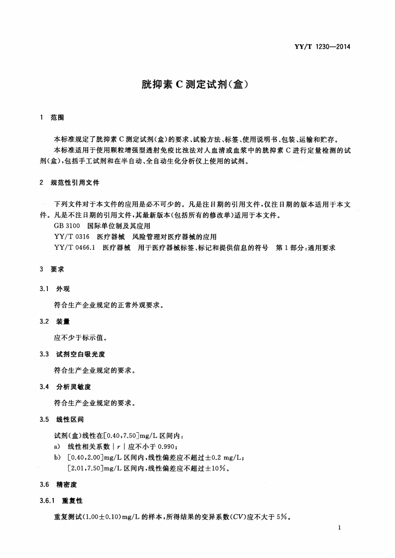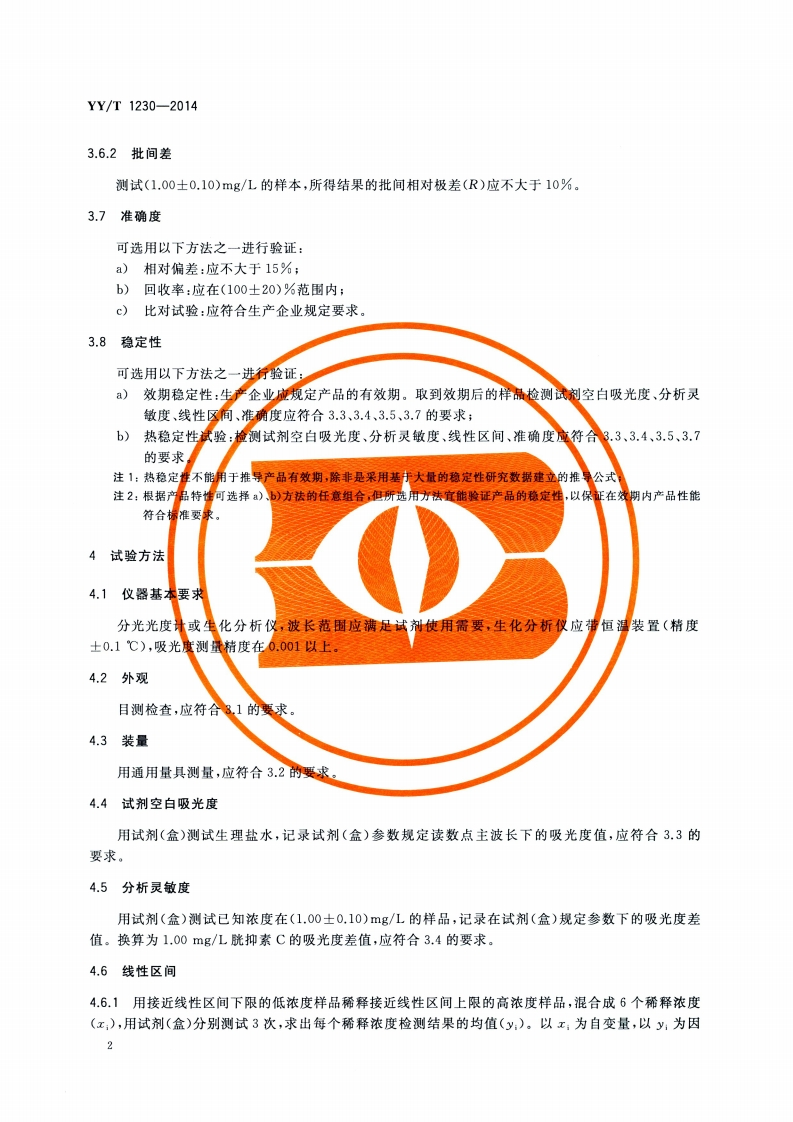 半胱氨酸蛋白酶抑制剂C检测试剂(盒)CystatinCdetectionreagentkit348072@abc3天前发布关注私信2.85MB11页028半胱氨酸蛋白酶抑制剂C检测试剂(盒)CystatinCdetectionreagentkit此内容为付费资源,请付费后查看¥13¥19黄金会员免费钻石会员免费立即购买您当前未登录!建议登陆后购买,可保存购买订单付费资源 第1页 / 共11页 第2页 / 共11页 第3页 / 共11页 第4页 / 共11页 第5页 / 共11页 试读已结束,还剩6页,您可下载完整版后进行离线阅读 THE END标准规范 文本预览 ICS11.100C44YY中华人民共和国医药行业标准YY/T1230-2014胱抑素C测定试剂(盒)Cystatin C test reagent kit2014-06-17发布2015-07-01实施Φ国家食品药品监督管理总局发布 查看更多 收起部分 喜欢就支持一下吧收藏