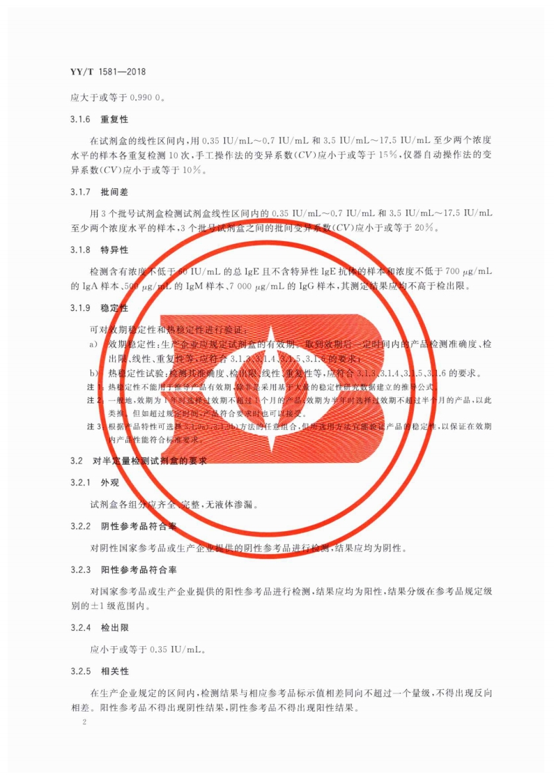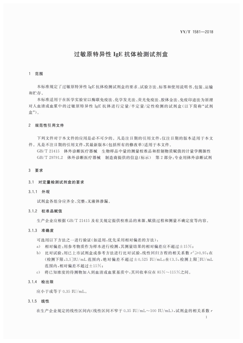 变应原特异性IgE抗体检测试剂盒Allergen-specificIgEdetectionkit348072@abc3天前发布关注私信1.97MB12页038变应原特异性IgE抗体检测试剂盒Allergen-specificIgEdetectionkit此内容为付费资源,请付费后查看¥13¥19黄金会员免费钻石会员免费立即购买您当前未登录!建议登陆后购买,可保存购买订单付费资源 第1页 / 共12页 第2页 / 共12页 第3页 / 共12页 第4页 / 共12页 第5页 / 共12页 试读已结束,还剩7页,您可下载完整版后进行离线阅读 THE END标准规范 文本预览 ICS11.100C44YY中华人民共和国医药行业标准YY/T1581-2018过敏原特异性Ig卫抗体检测试剂盒Allergy-specific IgE detection kit2018-02-24发布2019-03-01实施Φ国家食品药品监督管理总局发布 查看更多 收起部分 喜欢就支持一下吧收藏