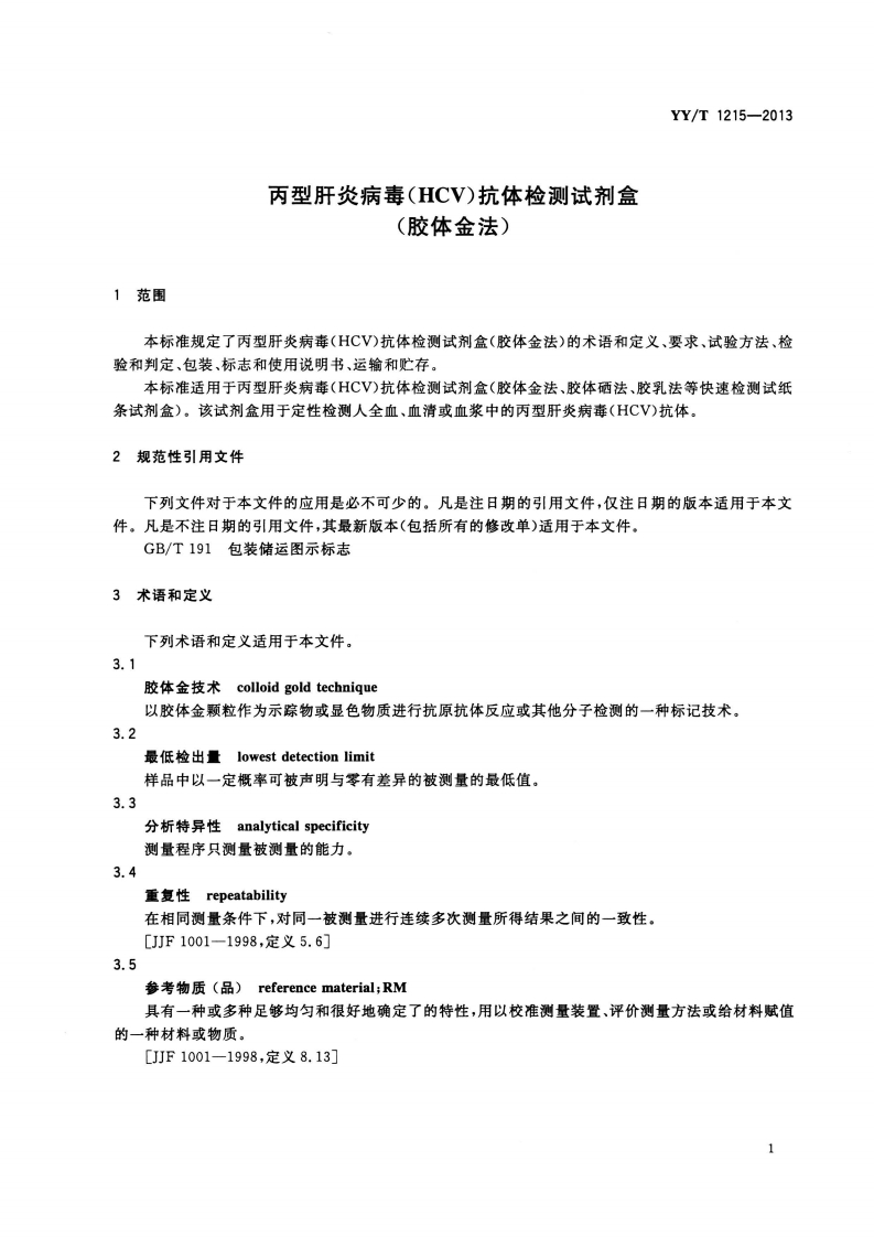 丙型肝炎病毒(HCV)抗体诊断试剂胶体金法HepatitisCvirusantibodydiagnosticreagent(Colloidalgoldmethod)348072@abc前天发布关注私信2.22MB12页031丙型肝炎病毒(HCV)抗体诊断试剂胶体金法HepatitisCvirusantibodydiagnosticreagent(Colloidalgoldmethod)此内容为付费资源,请付费后查看¥13¥19黄金会员免费钻石会员免费立即购买您当前未登录!建议登陆后购买,可保存购买订单付费资源 第1页 / 共12页 第2页 / 共12页 第3页 / 共12页 第4页 / 共12页 第5页 / 共12页 试读已结束,还剩7页,您可下载完整版后进行离线阅读 THE END标准规范 文本预览 ICs11.100C44YY中华人民共和国医药行业标准YY/T1215-2013丙型肝炎病毒(HCV)抗体检测试剂盒(胶体金法)Hepatitis C antibody diagnostic kit(Colloid gold method)2013-10-21发布2014-10-01实施国家食品药品监督管理总局发布Φ 查看更多 收起部分 喜欢就支持一下吧收藏