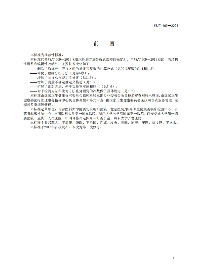 临床定量检测方法分析总误差的评估Evaluationofanalyticaltotalerrorforquantitativeclinicallaboratorymethods_2348072@abc昨天发布关注私信1.30MB13页049临床定量检测方法分析总误差的评估Evaluationofanalyticaltotalerrorforquantitativeclinicallaboratorymethods_2此内容为付费资源,请付费后查看¥13¥19黄金会员免费钻石会员免费立即购买您当前未登录!建议登陆后购买,可保存购买订单付费资源 第1页 / 共13页 第2页 / 共13页 第3页 / 共13页 第4页 / 共13页 第5页 / 共13页 试读已结束,还剩8页,您可下载完整版后进行离线阅读 THE END标准规范 文本预览 ICS11.020CCS C 50WS中华人民共和国卫生行业标准WS/T409-2024代替WS/T409一2013临床定量检测方法分析总误差的评估Evaluation of analytical total error for quantitative clinical laboratory methods2024-05-09发布2024-11-01实施中华人民共和国国家卫生健康委员会发布 查看更多 收起部分 喜欢就支持一下吧收藏