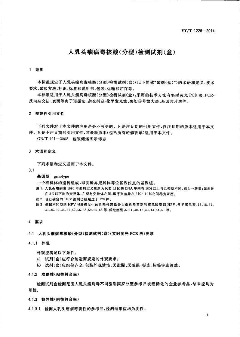 人乳头状瘤病毒核酸(分型)检测试剂盒Humanpapillomavirusnucleicacid(genotyping)detectionreagentset348072@abc3天前发布关注私信0.28MB12页050人乳头状瘤病毒核酸(分型)检测试剂盒Humanpapillomavirusnucleicacid(genotyping)detectionreagentset此内容为付费资源,请付费后查看¥13¥19黄金会员免费钻石会员免费立即购买您当前未登录!建议登陆后购买,可保存购买订单付费资源 第1页 / 共12页 第2页 / 共12页 第3页 / 共12页 第4页 / 共12页 第5页 / 共12页 试读已结束,还剩7页,您可下载完整版后进行离线阅读 THE END标准规范 文本预览 ICS11.100C44YY中华人民共和国医药行业标准YY/T1226-2014人乳头瘤病毒核酸(分型)检测试剂(盒)Human papillomavirus nucleic acid (genotyping)detection kit2014-06-17发布2015-07-01实施国家食品药品监督管理总局发布 查看更多 收起部分 喜欢就支持一下吧收藏