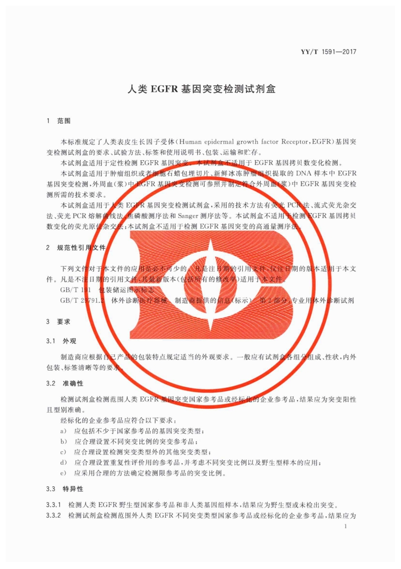 人类EGFR基因突变检测试剂盒Humanepidermalgrowthfactorreceptor(EGFR)mutationdetectionkit348072@abc4天前发布关注私信1.14MB9页038人类EGFR基因突变检测试剂盒Humanepidermalgrowthfactorreceptor(EGFR)mutationdetectionkit此内容为付费资源,请付费后查看¥13¥19黄金会员免费钻石会员免费立即购买您当前未登录!建议登陆后购买,可保存购买订单付费资源 第1页 / 共9页 第2页 / 共9页 第3页 / 共9页 第4页 / 共9页 第5页 / 共9页 试读已结束,还剩4页,您可下载完整版后进行离线阅读 THE END标准规范 文本预览 1CS11.040.30C30e中我4YY3门中华人民共和国医药行业标准YY/T1591-2017人类EGFR基因突变检测试剂盒Human epidermal growth factor receptor(EGFR)mutation detection kit2017-12-05发布2018-12-01实施国家食品药品监督管理总局发布 查看更多 收起部分 喜欢就支持一下吧收藏